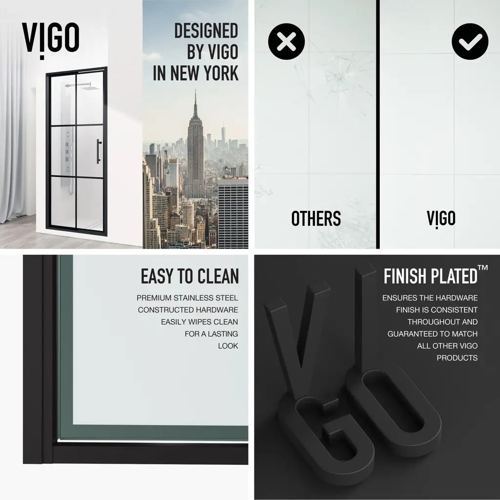 Introducing the Astoria – VIGO's newest breakthrough in compact shower doors. This door doubles your space efficiency, preventing any accidental bumps with nearby items. Whether you're aiming to optimize a cozy bathroom or add a distinctive touch to a spacious one, this modern door guarantees a stylish impact in limited spaces.VIGO VG6079GCL3276 Features:VIGO VG6079GCL3276 Specifications: