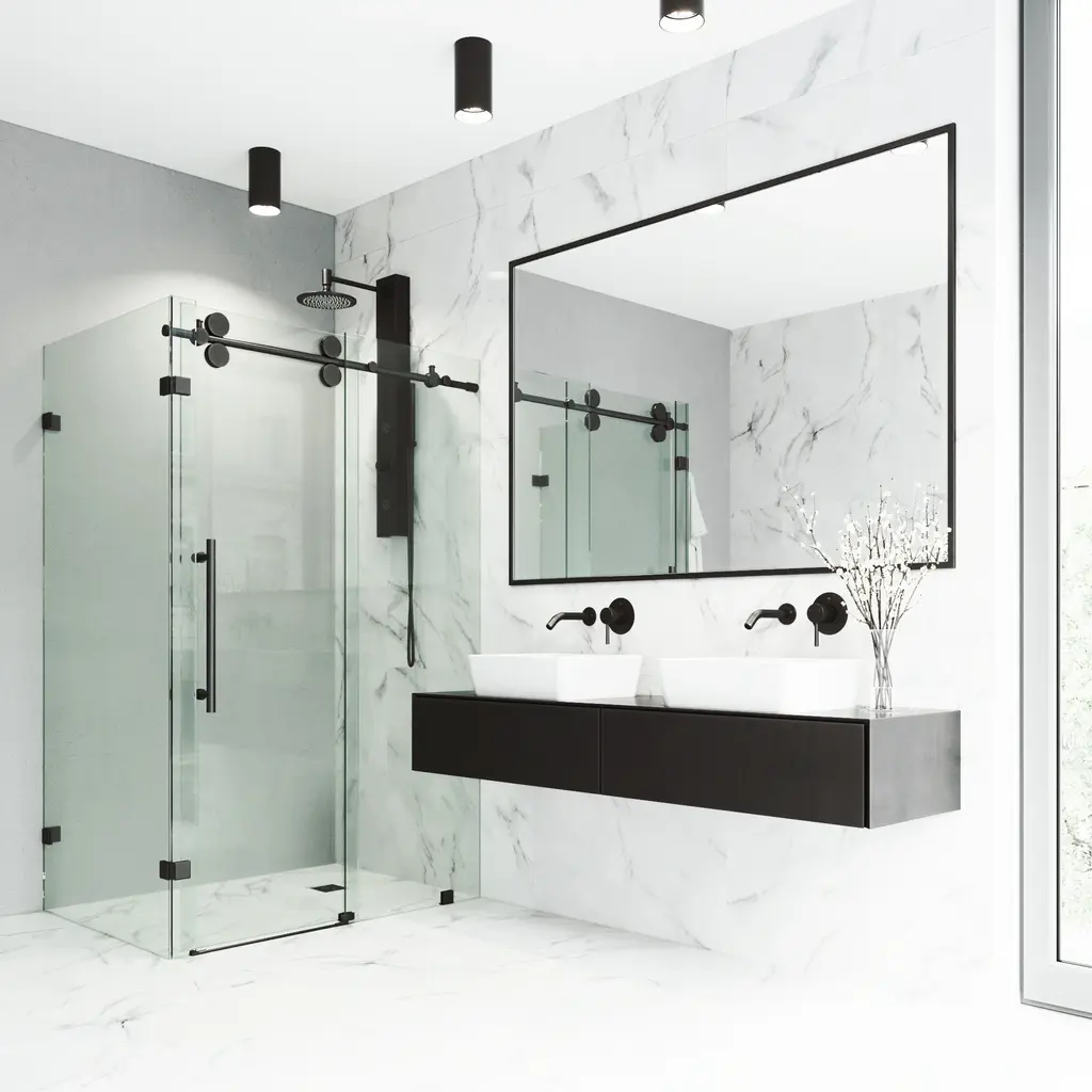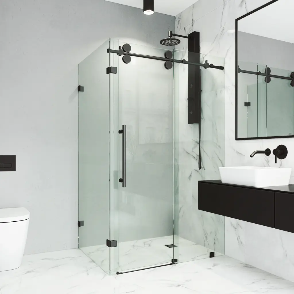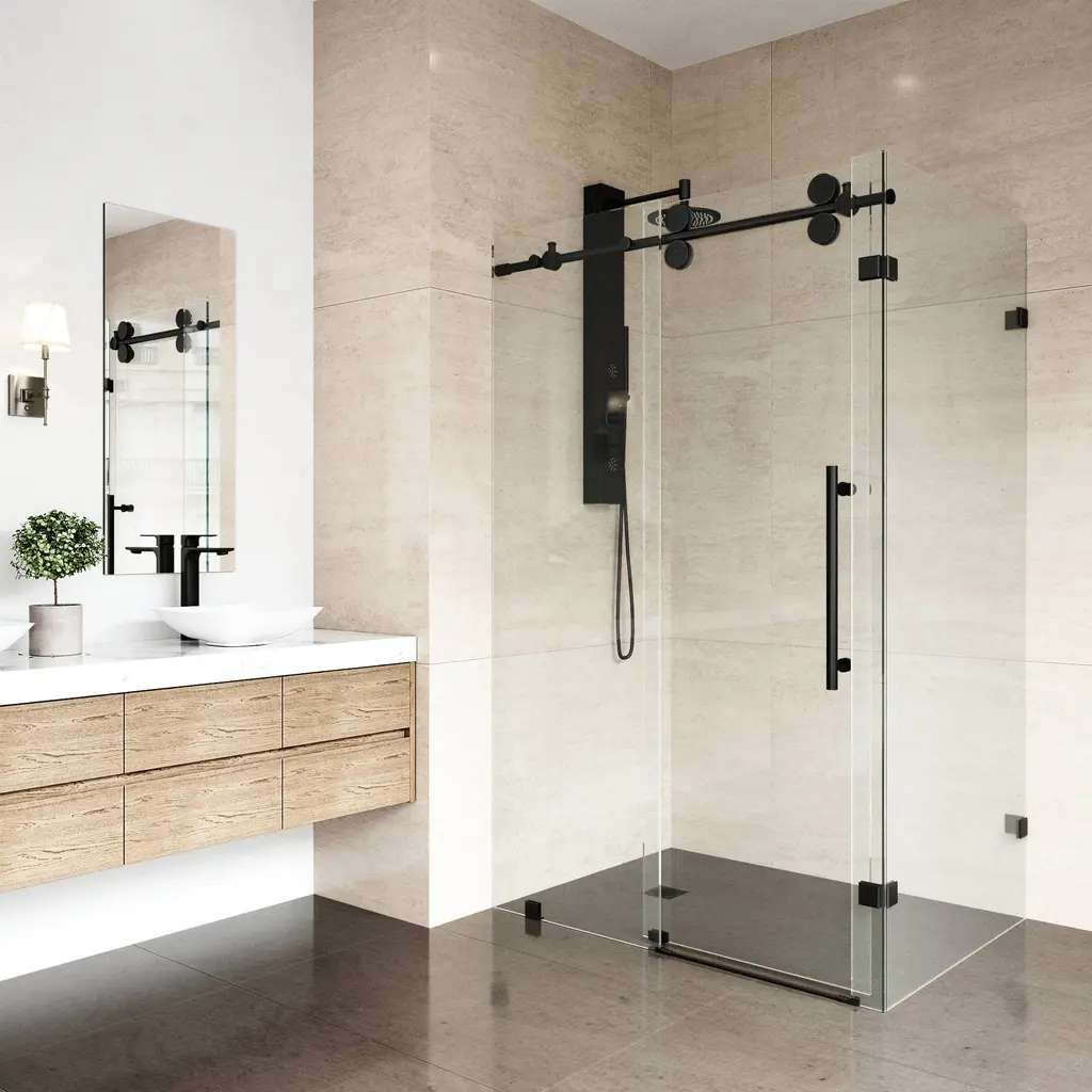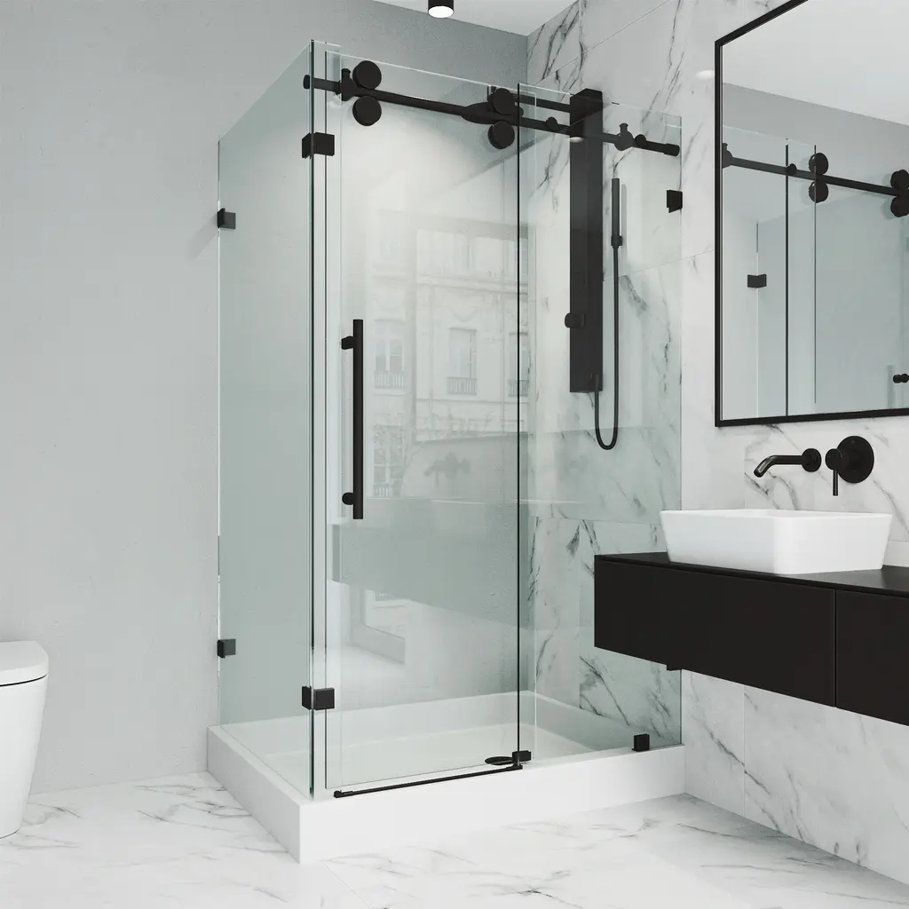 Vigo Winslow Frameless Sliding Shower Enclosure - 35"d X 46"w X 74"h - Matte Black