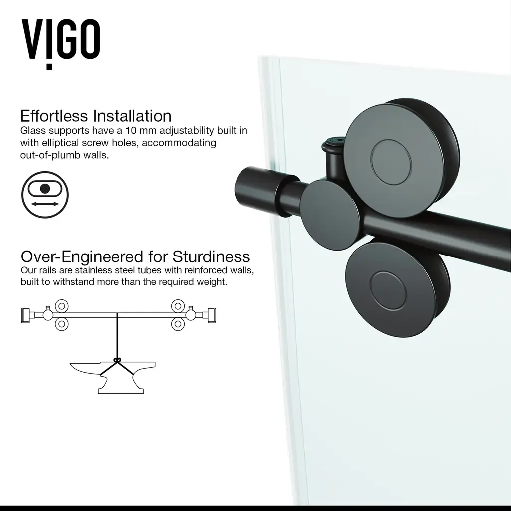 Upgrade your bathroom with the sleek and modern VIGO Frameless Clear Shower Enclosure. Made with durable stainless steel and 3/8" tempered glass, this shower enclosure is built to last. The sliding door can be installed to open left or right, while the RollerDisk™ Technology allows for adjustability. With rust-free hardware and scratch-free finishes, this shower enclosure is not only beautiful, but also highly functional and safe.Features: Other sections: