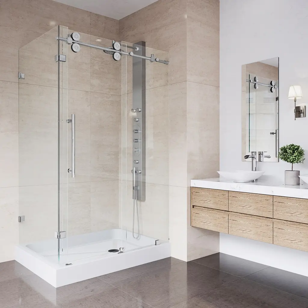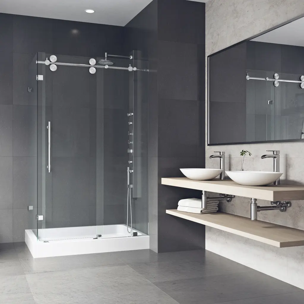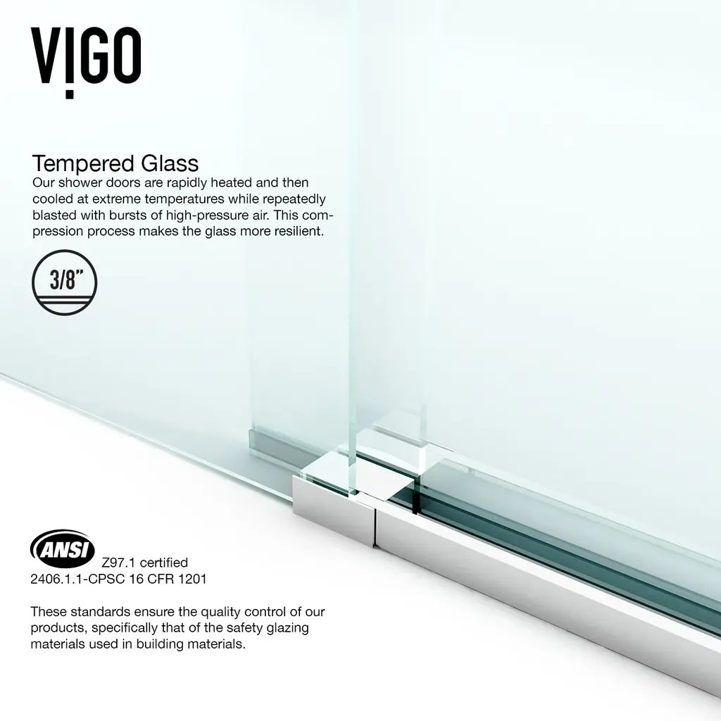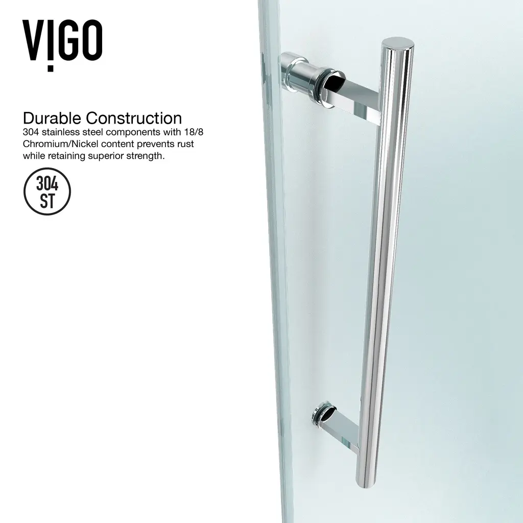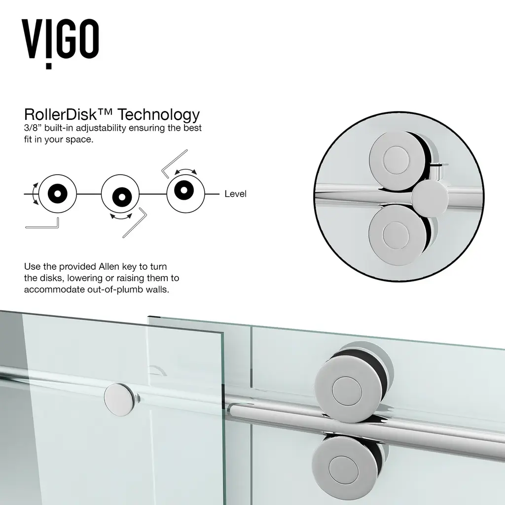 Upgrade your bathroom with the sleek and modern VIGO Frameless Clear Shower Enclosure. Made with durable stainless steel and 3/8" tempered glass, this shower enclosure is built to last. The sliding door can be installed to open left or right, while the RollerDisk™ Technology allows for adjustability. With rust-free hardware and scratch-free finishes, this shower enclosure is not only beautiful, but also highly functional and safe.Features: Other sections: