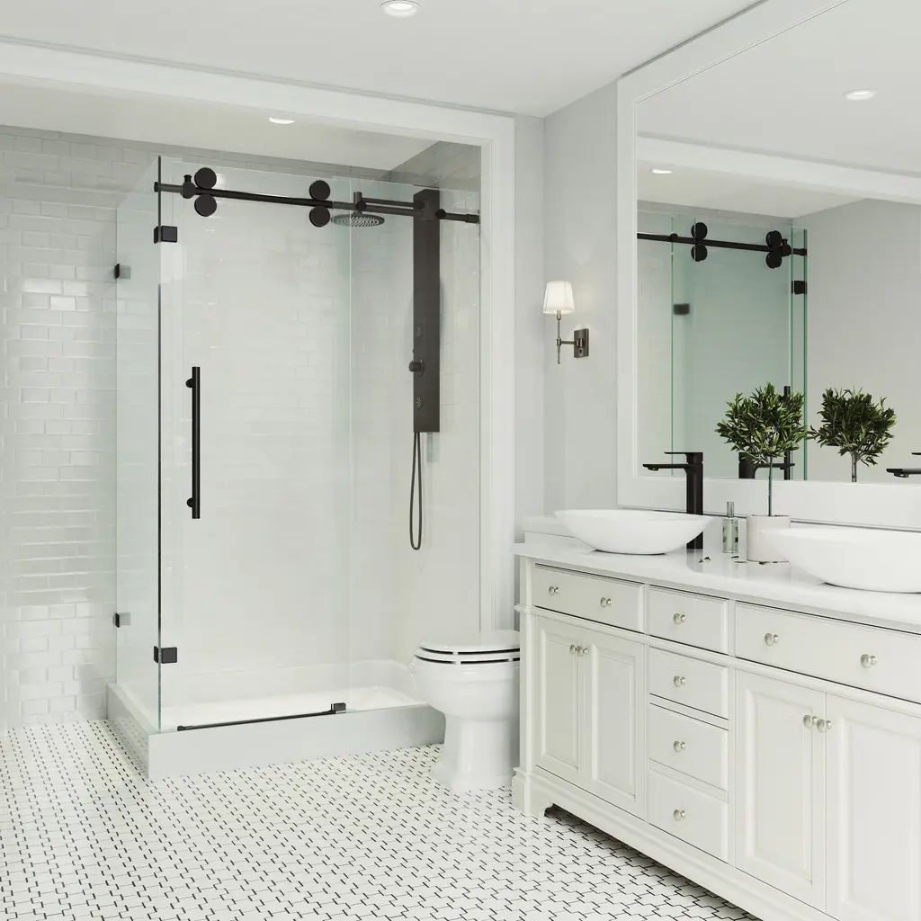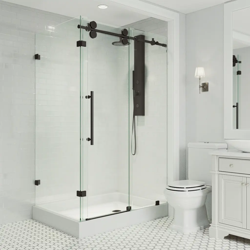 Vigo Winslow Frameless Sliding Shower Enclosure - 36"d X 48"w X 80"h, Right - Matte Black