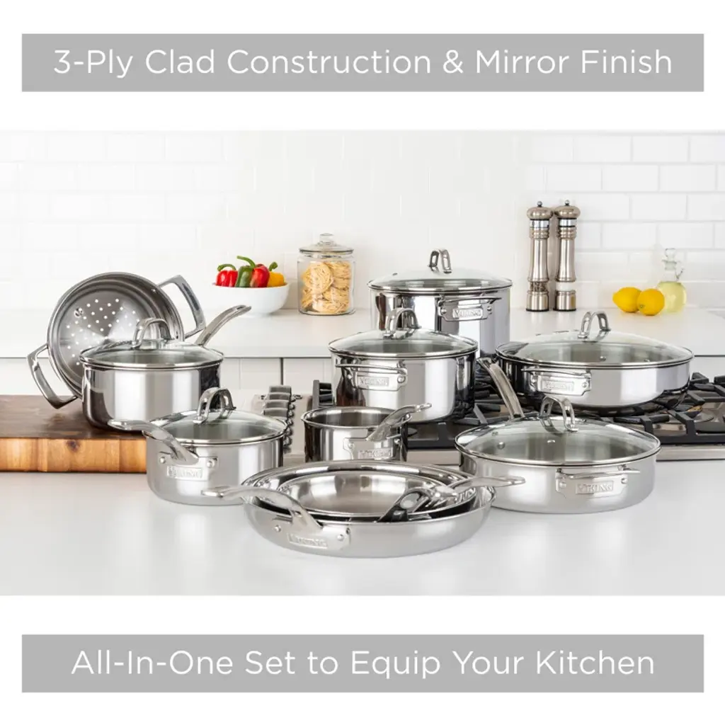 Viking 3-Ply 17 Piece Stainless Steel Cookware Set
