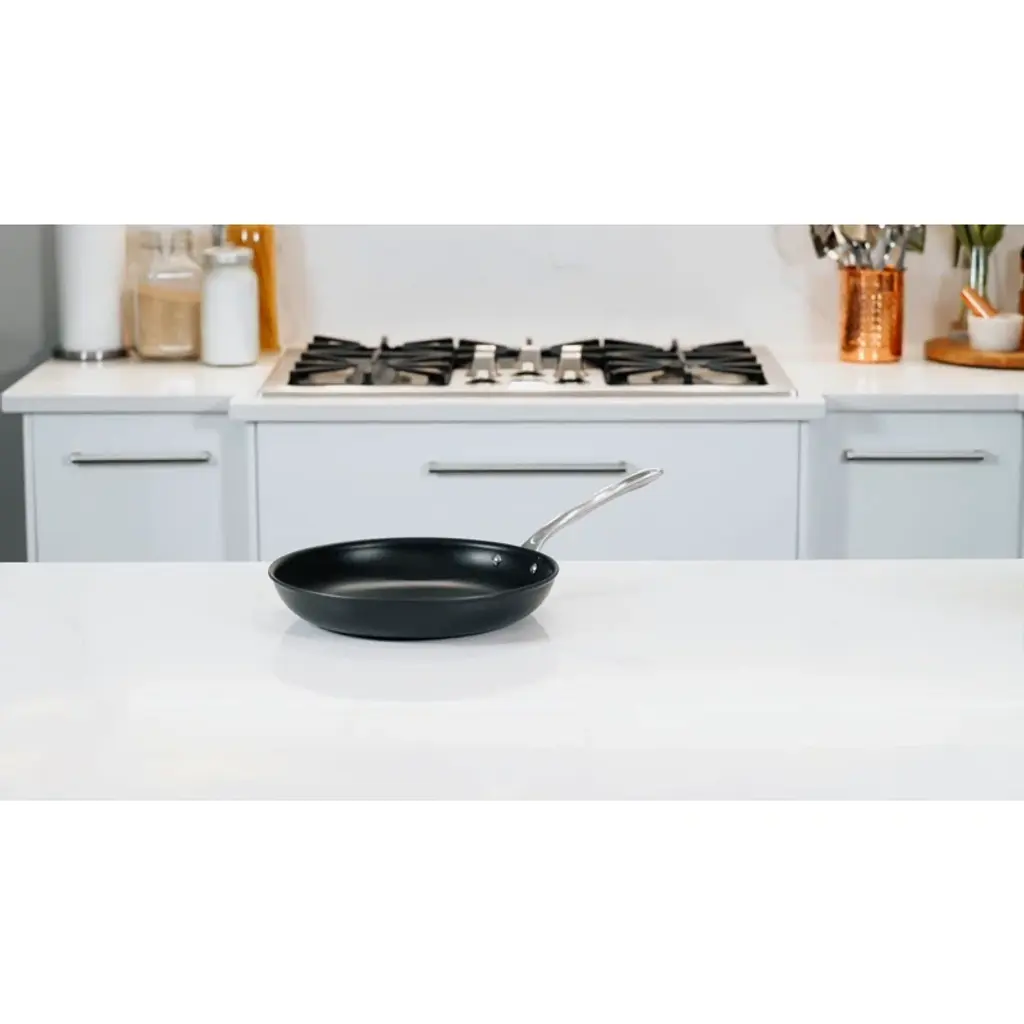 Viking hard anodized cookware features a base making it exceptionally stable and compatible with all cooktops including induction. Featuring PFOA free nonstick, each piece is coated with three layers of durable nonstick coating to ensure maximum release and longevity, even when using metal utensils. The saucepans and larger vessels feature interior measurement markings for accurate addition and reduction of ingredients. Long handles feature a finger stop that guides your hand to the perfect grip for comfort, balance, and control.