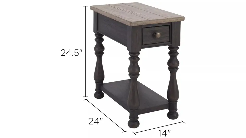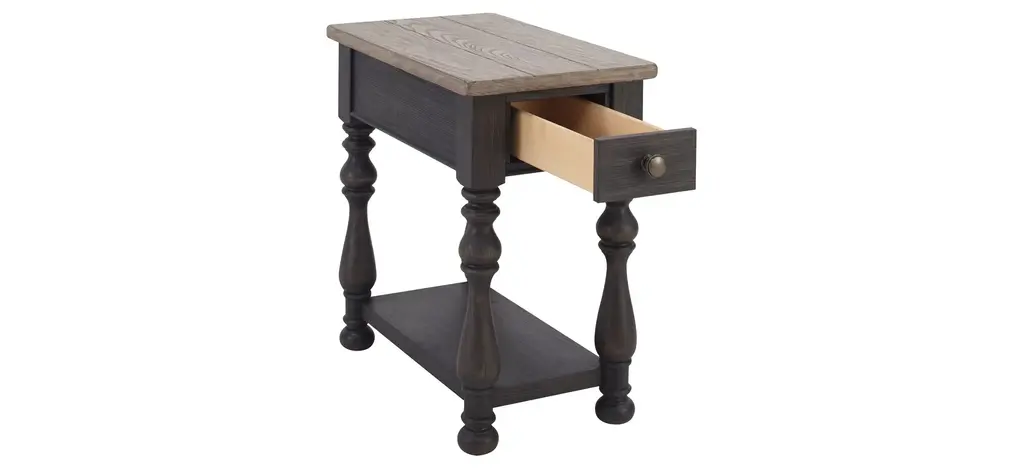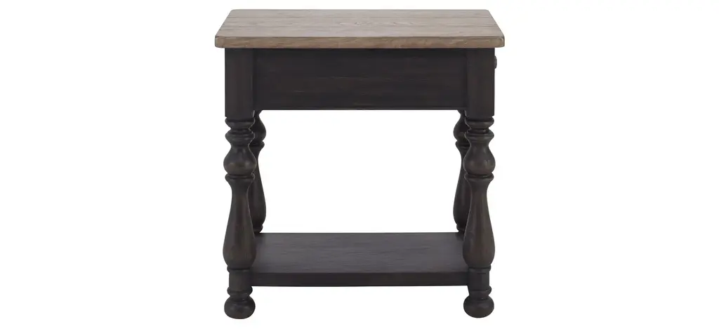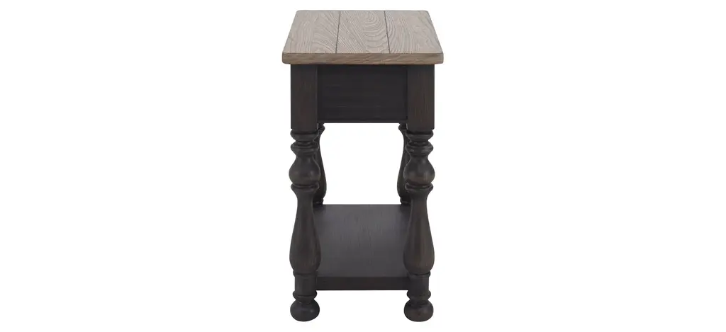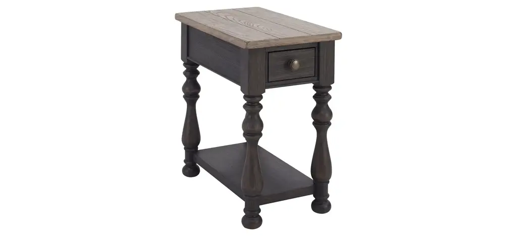 Bring classic charm into your living room with the Villa Ridge chairside table. Its two-tone wood veneer and antique-finished hardware really catch the eye.