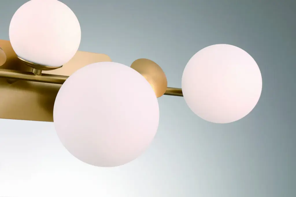 The Vine Vanity light in gold with opal glass brings an elegant touch to your home. Its 3-light design provides soft, even illumination, perfect for modern bathrooms or any space needing ambient lighting. With integrated LED technology, this fixture offers both style and energy efficiency, making it a practical and chic lighting solution. This product is cETLus certified.•Number of Lights: 3•Bulb Type: LED integrated•Wattage: 24W•LED Color Temperature (K): 3000K•Dimmable: Yes•Bulb Included: Yes•Voltage: 120V•Hardwire or Plug-in: Hardwired