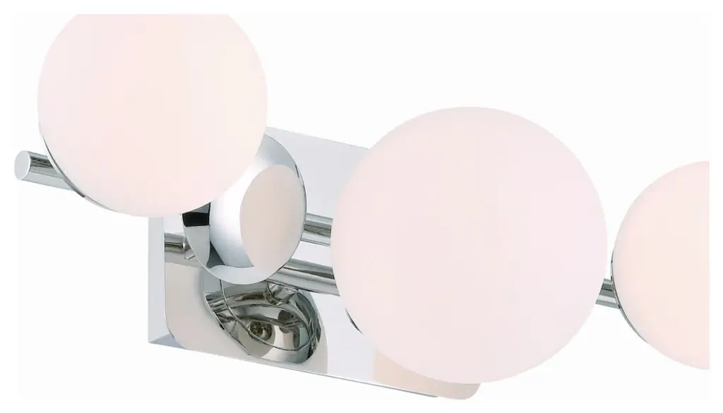 The Vine Vanity Light in polished nickel with opal glass shades exudes a modern yet timeless look. This three-light fixture provides soft, diffused lighting that is ideal for bathrooms, bedrooms, or any area that needs a touch of elegance. The opal glass creates an ambient glow, while the polished nickel finish adds a sophisticated shine. This product is cETLus certified.•Number of Lights: 3•Bulb Type: LED integrated•Wattage: 24W•LED Color Temperature (K): 3000K•Dimmable: Yes•Bulb Included: Yes•Voltage: 120V•Hardwire or Plug-in: Hardwired
