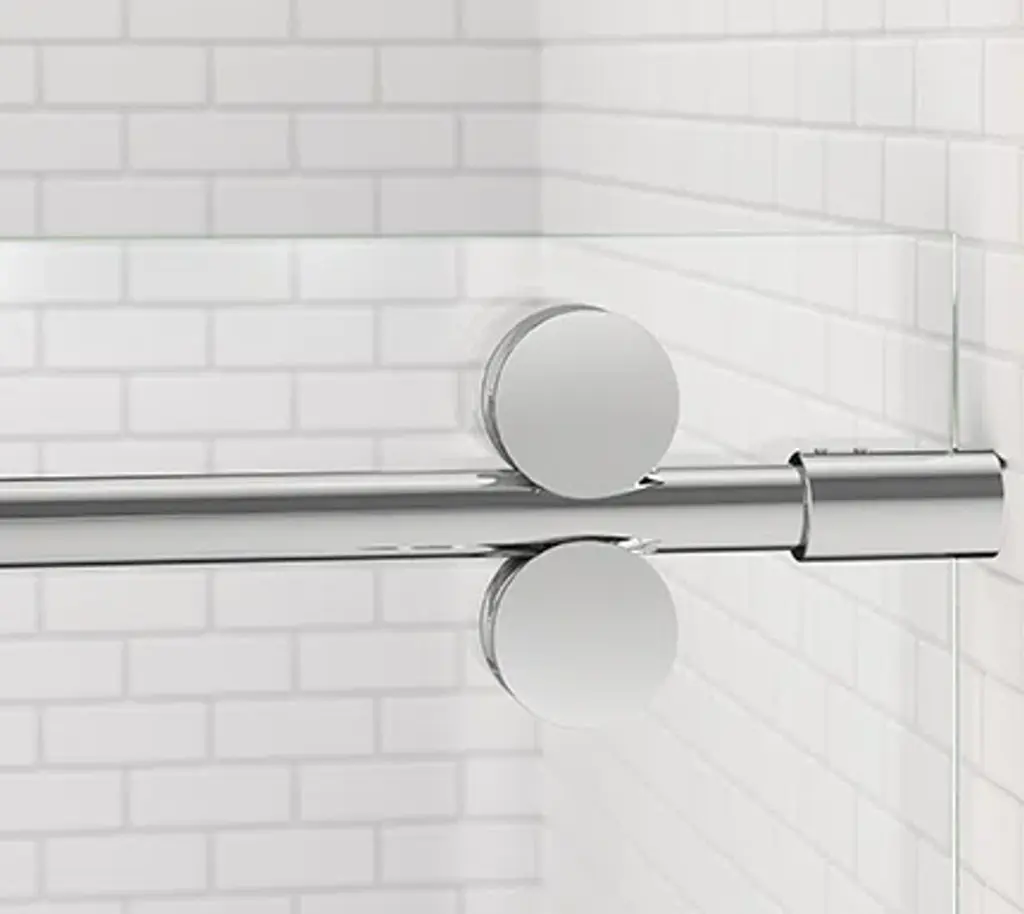 The Vinesse Lux provides the perfect balance of beauty, function, and affordable luxury. Developed specifically to fit today’s most popular shower openings, the urban style double rolling design makes it the ideal solution when space is at a premium. 3/8-inch heavy tempered glass provides a smooth experience when rolling the door with a 13-inch handle industrial handle. The exposed header gives a suspended look, which contains large rollers on both the top and the bottom.