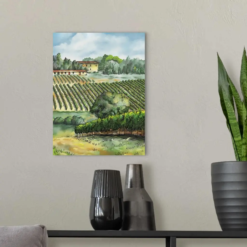 Beautiful vineyards landscape. Originally a digital watercolor.