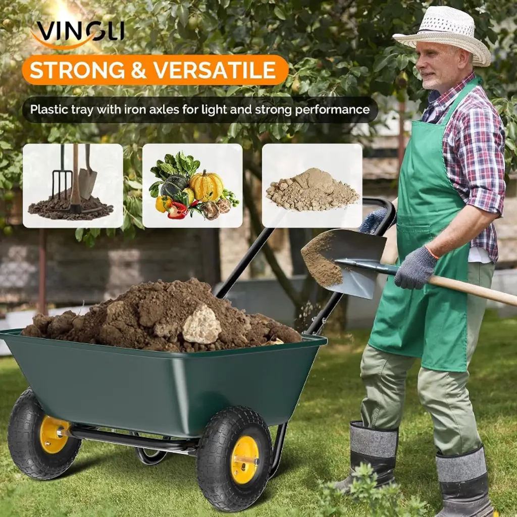 Vingli 2 Wheel Wheelbarrow, Plastic And Steel Wheel Barrel, 300lbs Capacity Garden Cart For Lawn, Gardening, Construction
