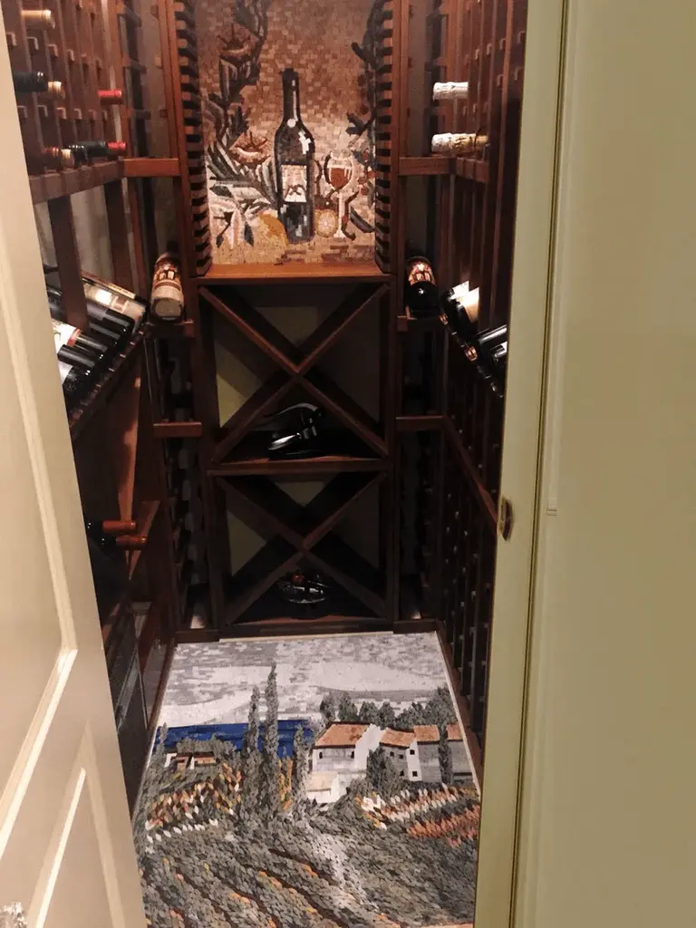 Wine art is always a captivating addition to any space, especially kitchens and dining areas, where it infuses a luxurious and elegant ambiance that elevates every meal. Our Vino Astratto mosaic wine design is handcrafted with premium quality natural stone, enriched with colorful and lively details that will beautifully enhance any setting. This exquisite mosaic features the radiant allure of Dark Red Quartz, whose luminous, crystalline depths shimmer with a jewel-like, prismatic brilliance. The scintillating tones of this rich quartz add a radiant warmth and captivating complexity, making the mosaic a true statement piece of exotic materials and luxury stone craftsmanship. Each piece is silky and cool to the touch, showcasing the artistry and premium quality inherent in every handcrafted tile. With its vibrant and sophisticated palette, the Vino Astratto mosaic transforms your space into an elegant retreat, perfect for those who appreciate the finer things in life. Elevate your interiors with this dazzling, natural stone masterpiece that makes any meal much more special.