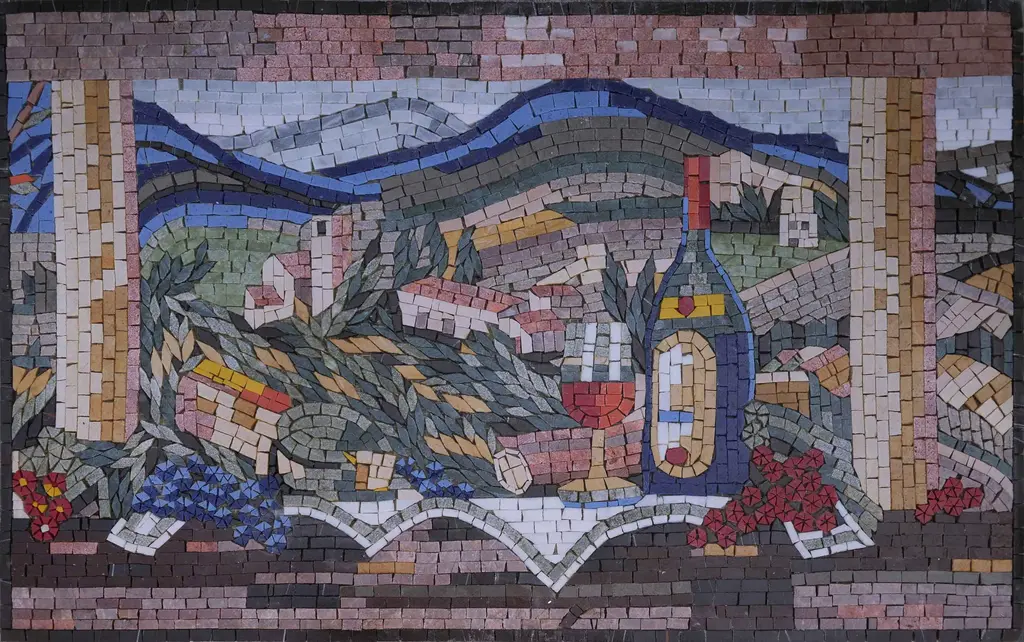 Introducing the Vino e Frutta All'aperto Mosaic Mural, a stunning piece designed to bring the charm of the French countryside right into your home. This exquisite mural is perfect for those looking to add a touch of elegance and sophistication to their interiors. Crafted from luxurious natural marble mosaic stones, the Vino e Frutta All'aperto Mosaic Mural showcases a beautiful array of calming pastel colors that create a serene and inviting atmosphere. Ideal for kitchen backsplashes or accent walls, this mural not only enhances the aesthetic appeal of any space but also embodies durability and practicality. Its waterproof design ensures that it can withstand the rigors of daily life, making it a perfect choice for both functional and decorative purposes. Each piece is meticulously handmade, reflecting an artistry that transforms simple walls into captivating displays of art.Imagine savoring your favorite moments surrounded by the tranquil beauty of your Vino e Frutta All'aperto Mosaic Mural, where every glance invites you to experience the peaceful charm of outdoor vineyards and lush landscapes. Elevate your environment with a mural that is more than just decoration; it’s an expression of style and a celebration of nature's bounty. Make your home a sanctuary of beauty and quality with the Vino e Frutta All'aperto Mosaic Mural, and let it inspire leisurely gatherings and intimate dinners in the comforting embrace of its artistic allure.