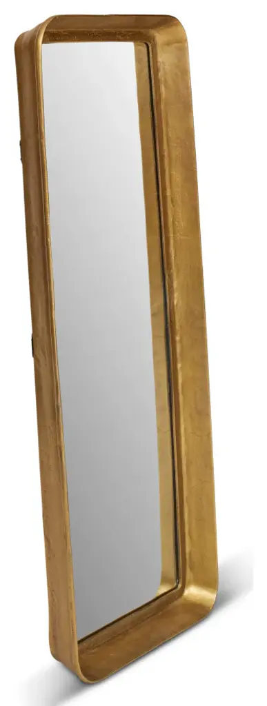 The Vinod Wall Mirror is unique in that can be hung horizontally or vertically. Crafted with a reclaimed aluminum frame available in several metal tones, Vinod is rectangular with soft, rounded edges and is crafted with a reclaimed aluminum frame. The mirror stands at 5 ft in height. / Sculptural design / Made from reclaimed aluminum / Each piece is handcrafted and unique / Color/Finish: N/A / Materials: Reclaimed Aluminum, Glass / Top Color/Finish: N/A / Top Material: N/A / Table Shape: N/A / Table Top Thickness: N/A / Base/Leg Color/Finish: N/A / Base/Leg Material: N/A / Weight Capacity: N/A
