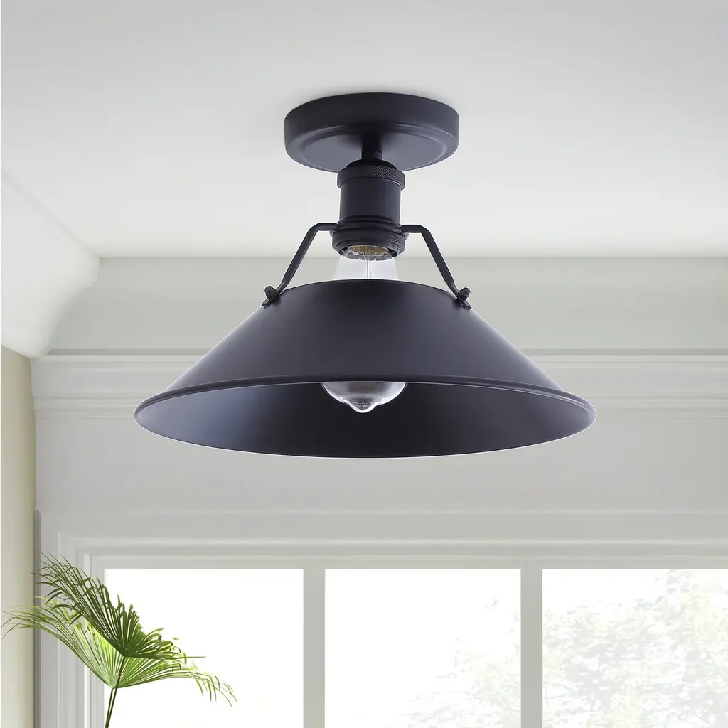 Vintage Black 1-Light Bell Shape Semi Flush Mount Lighting Fixture - Black