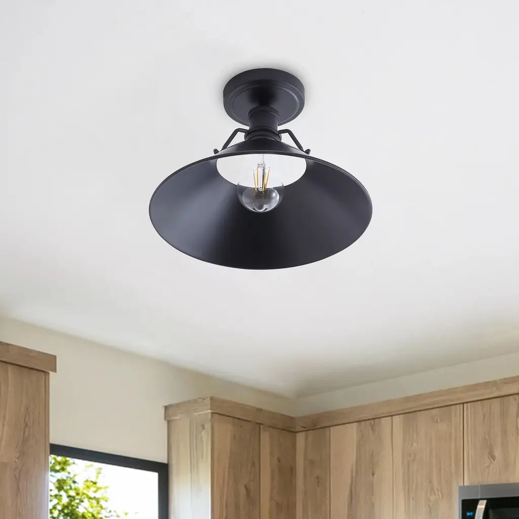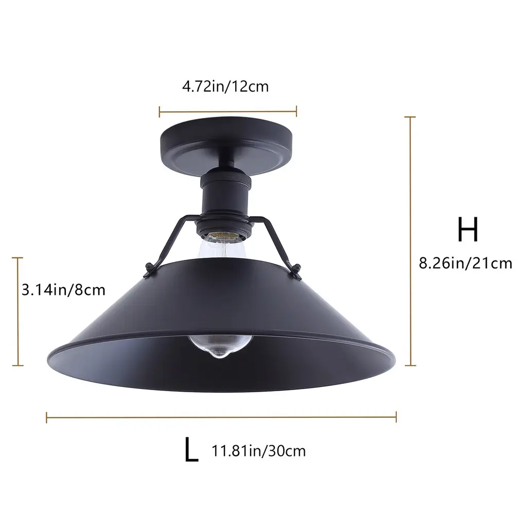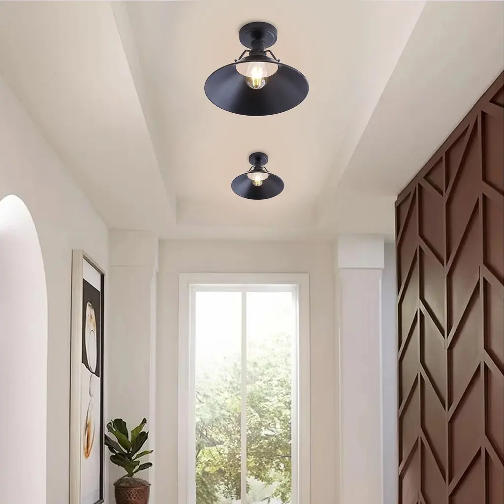 Specifications: Material and Design: The unique ceiling light features a unique black iron shade and vintage-style metal base, bringing a modern twist to its Avant-garde retro design.Quality Assurance: High-quality iron craft with painted finish. All products in the factory have to undergo rigorous safety monitoring, to ensure quality and safety.Easy to install: Don't worry about the installation difficulty, we will attach the installation instructions to you, with clear installation instructions, the operation can be completed quickly.Variety of Choices: Provide the most abundant categories of lighting products, to meet your needs. Our main products include LED Chandeliers, Pendant lights, Flush mount lights, Crystal Ceiling lamps, and island lights.Application: The vintage black ceiling light is perfect for the kitchen, farmhouse, dining room, coffee bar, bedroom, living room, and hallway.