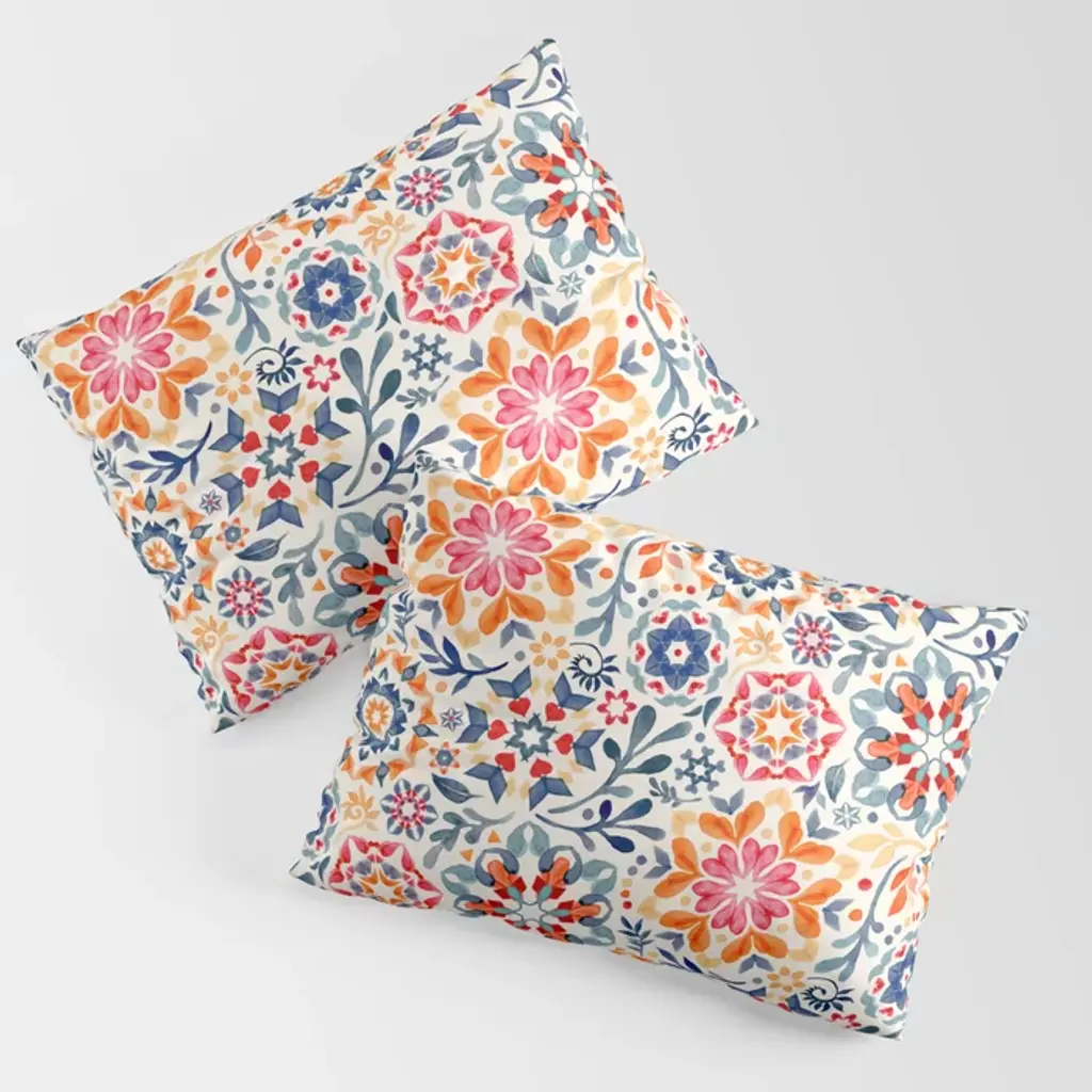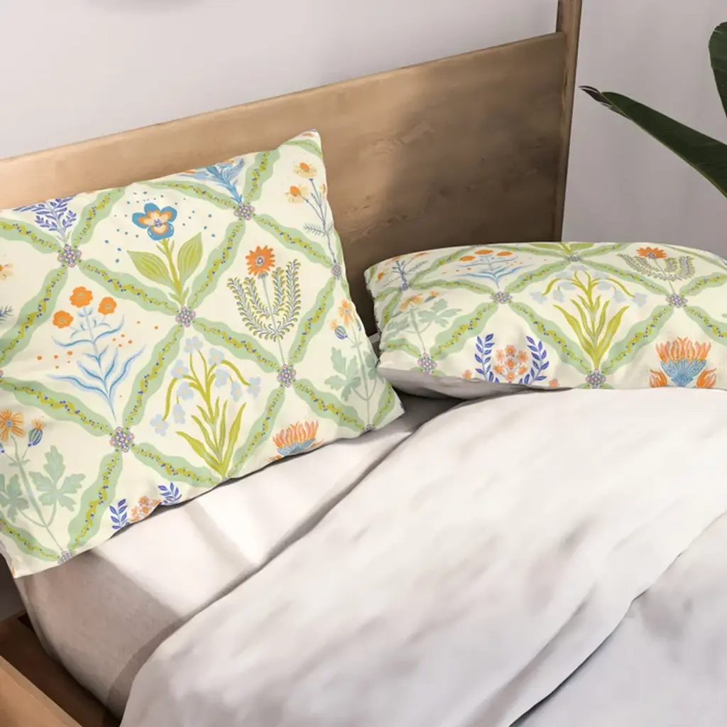 Vintage Botanical Floral Tile Pattern Pillow Sham