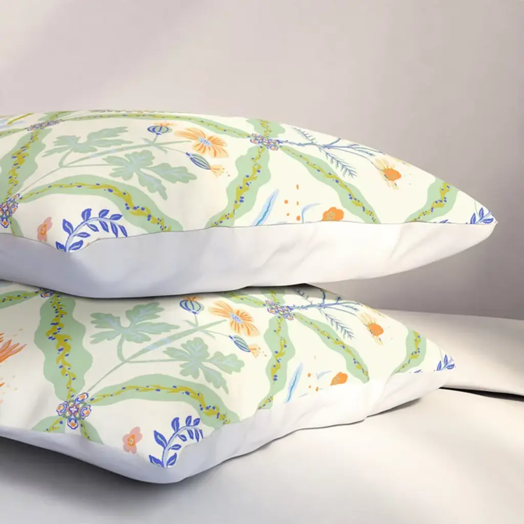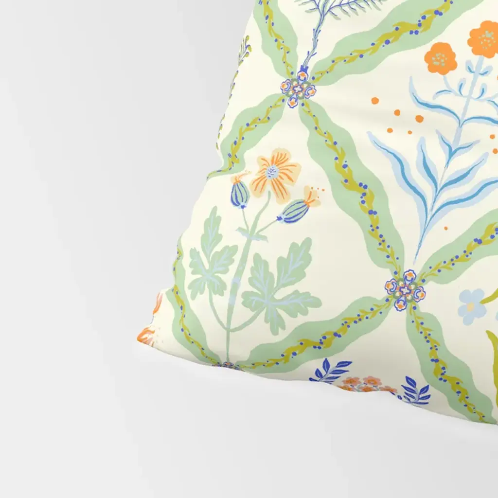 Vintage Botanical Floral Tile Pattern Pillow Sham