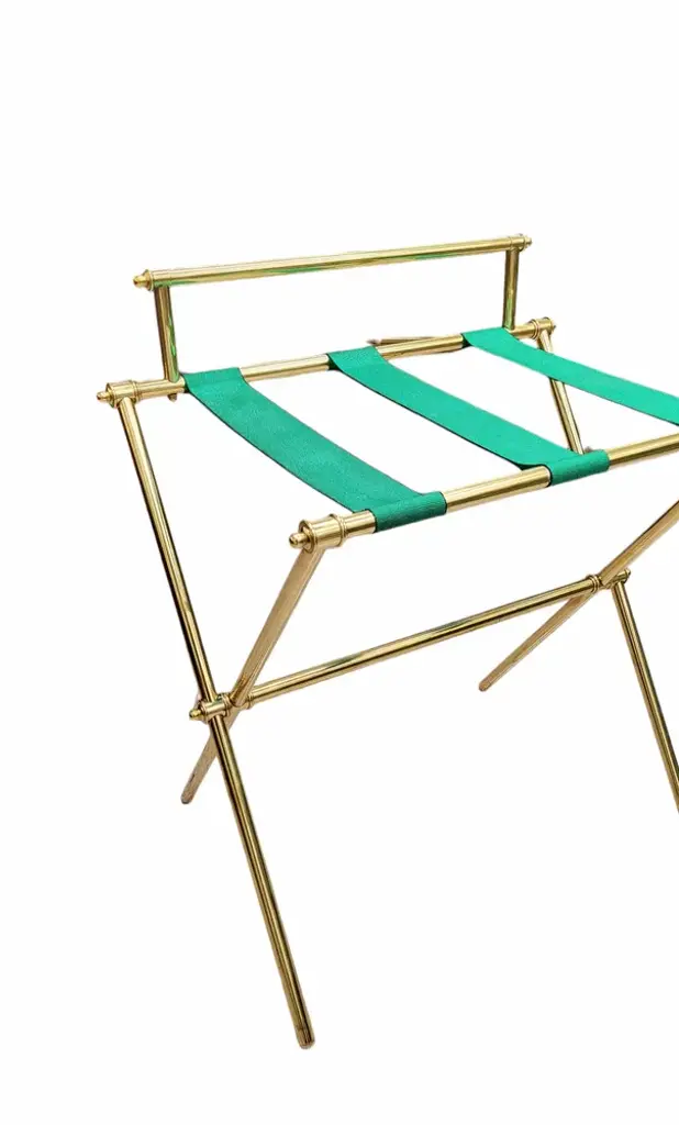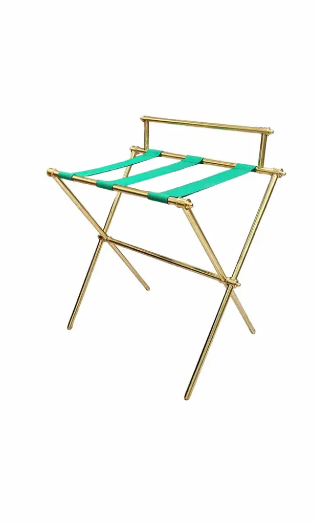 Luxurious folding brass luggage rack.