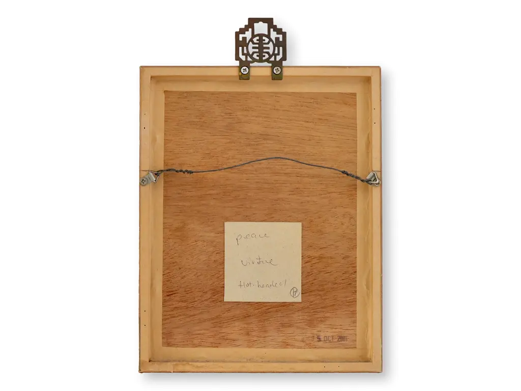 Original Chinese ink calligraphy spelling out “Andrew,” but this isn’t just a name, it’s a statement. The characters carry meanings of peace, virtue, and wisdom. Framed in faux bamboo with a chic chinoiserie crest, this piece is ready to hang wherever Andrew (or his biggest fan) wants to drop a little cultured charisma. Dated 2001 on backside.