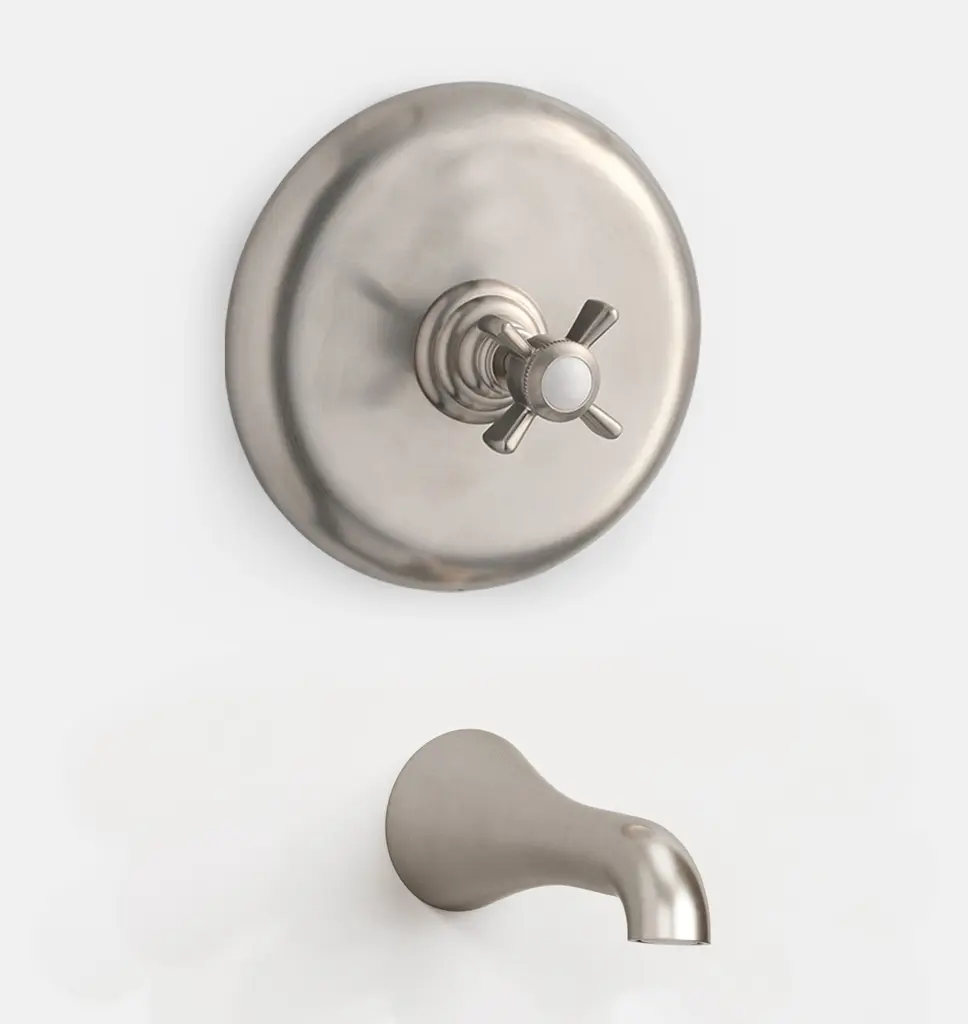 Vintage Cross-Handle Balanced-Pressure Tub & Shower Valve & Trim Set With Bath Spout