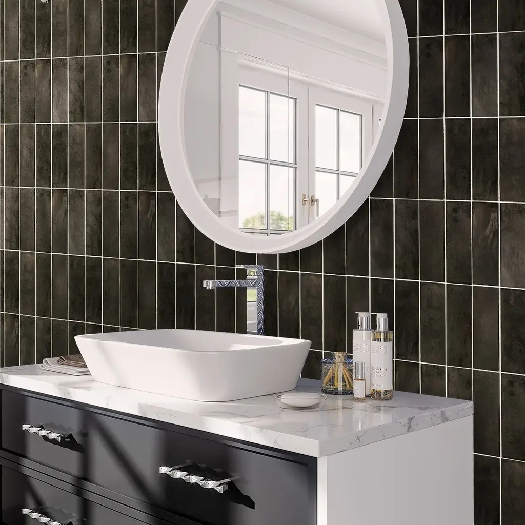 Reflecting the style of mirrors found in hotels a century ago. The rounded edges and clean design add a refined look that complements modern baths.