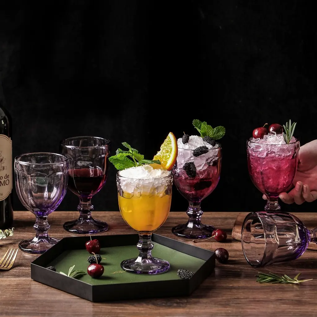 Vintage Embossed Glass Goblet (10.2 Oz. Set Of 6) - 3.94"d X 5.51"h - Clear