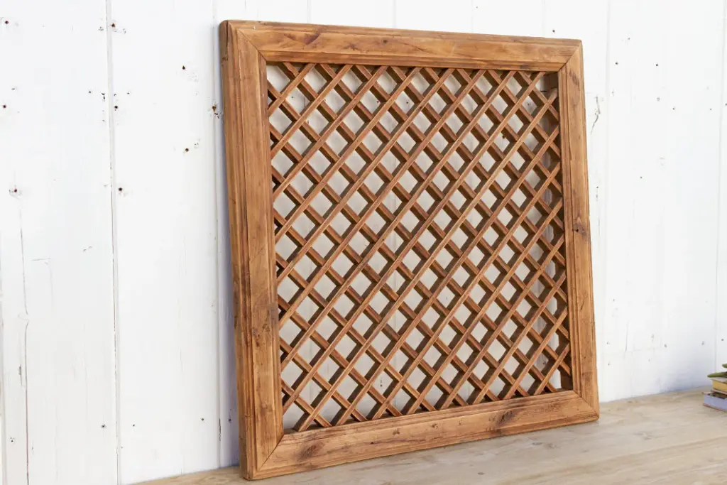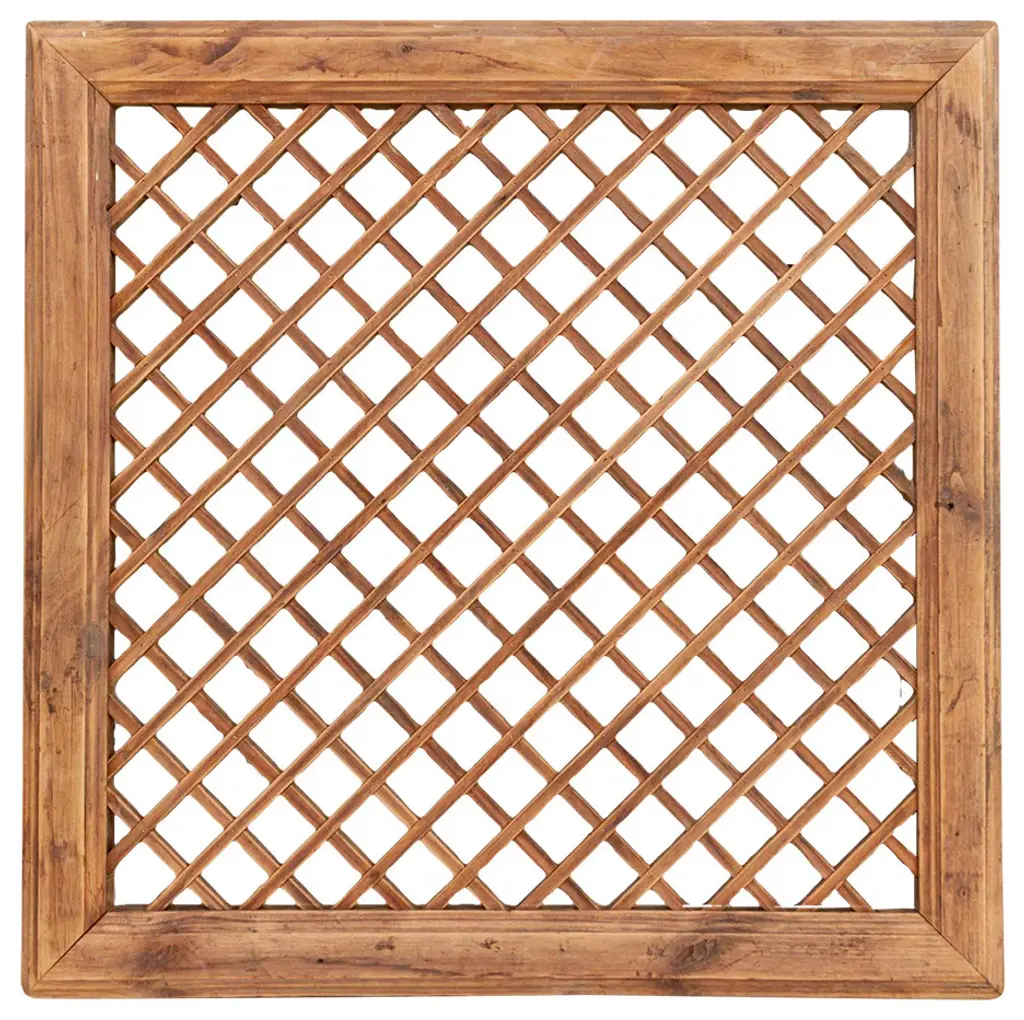 A traditional architectural feature of Chinese buildings, this beautiful antique Chinese lattice window was prominent in the quiet villages of the southern regions of China. They are handmade of wood and feature a complex geometric pattern of interlocking wooden frames, creating a lattice design. These antique windows were often painted in bright colors, and the frames are often decorated with intricate carvings and designs, such as flowers, birds, and auspicious symbols. The criss-cross lattice pattern allows light to filter through the window while providing privacy, and also serve as a decorative element. They also provide ventilation while being able to close off the windows with sliding wooden panels or bamboo blinds. This antique wood window frames are considered to be an important part of Chinese architectural heritage and were often seen in courtyard houses where they were used to separate different rooms. A lovely addition to your home as a built-in piece for your home or a one of a kind antique wall art.
