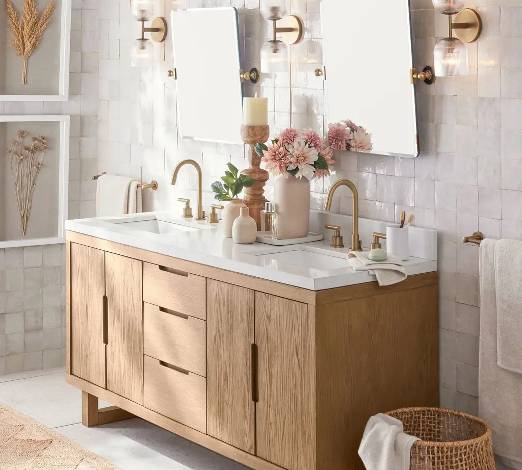 Reflecting the style of mirrors found in hotels a century ago. The rounded edges and clean design add a refined look that complements modern baths. Thoughtfully designed, this pivots so you can easily adjust it to your perfect height.