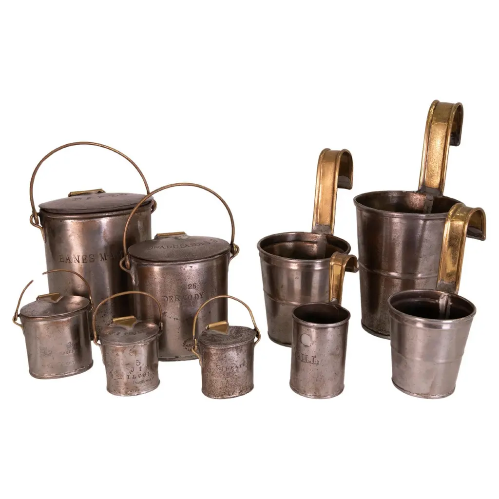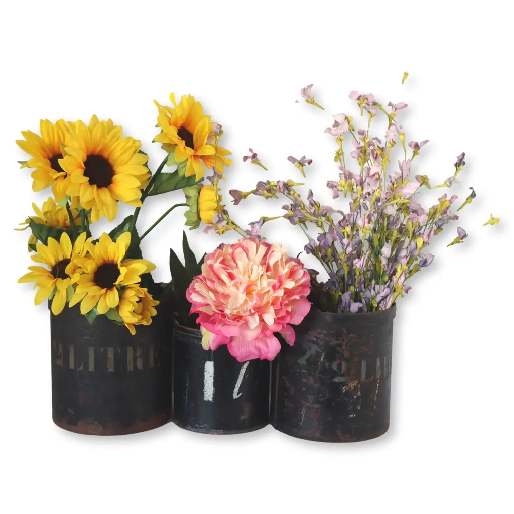 Capture the essence of rustic French decor with this set of three metal paint cans, marked and labeled with their sizes. This collection includes two 2-liter cans and one 1-liter can, each adding a touch of rustic charm to any setting. Perfect for unique storage solutions or as eclectic decorative pieces