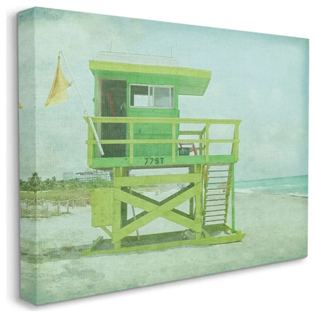 Vintage Green Lifeguard Stand Sandy Beach Photograph24x30
