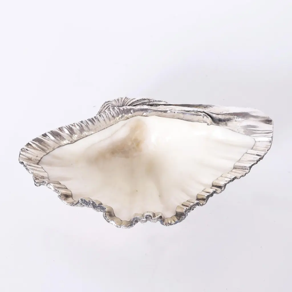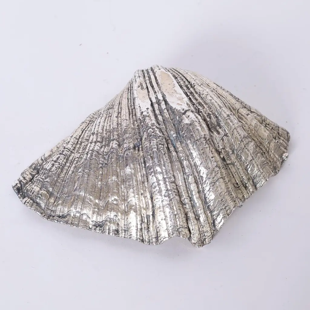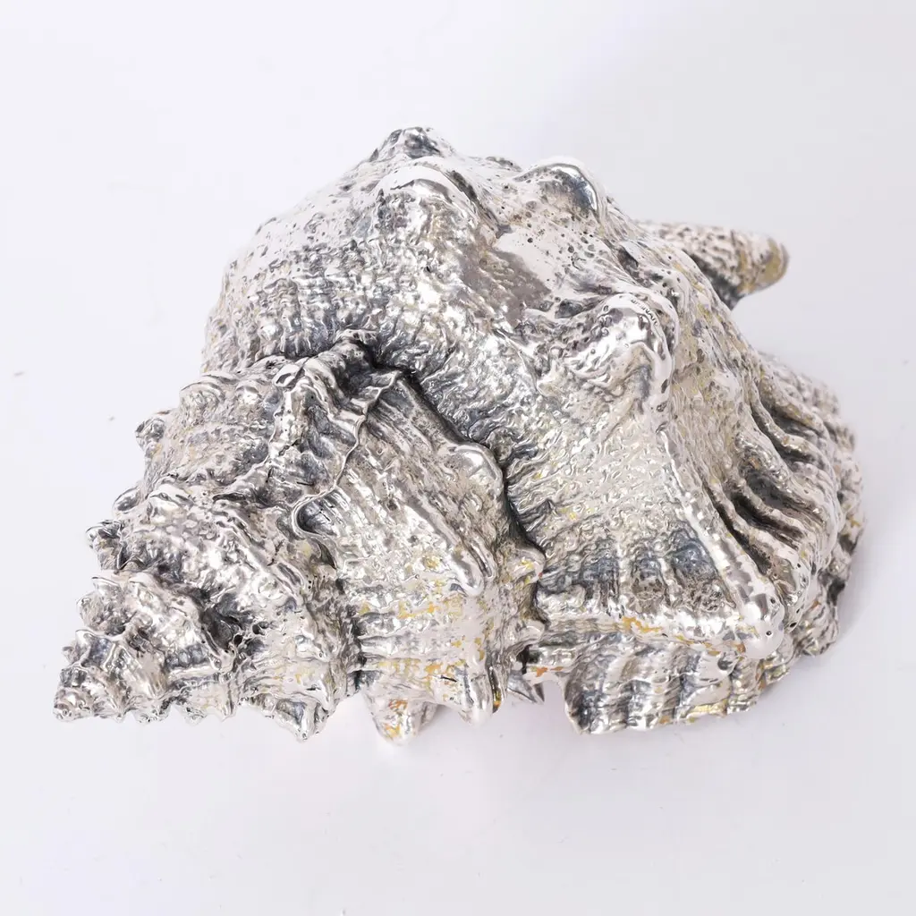 Striking group of five mid century assorted seashell specimens sculpturally enhanced with a silver overlay. Priced individually. Top Left H: 5 W: 8 D: 5.5 $1,450.00 Top Center H: 5.5 W: 9 D: 7 $900.00 Top Right H: 4 W: 7 D: 5 $1,750.00 Bottom Left H: 1.5 W: 4.5 D: 3 $550.00 Bottom Right H: 3 W: 8 D: 6 $1,150.00