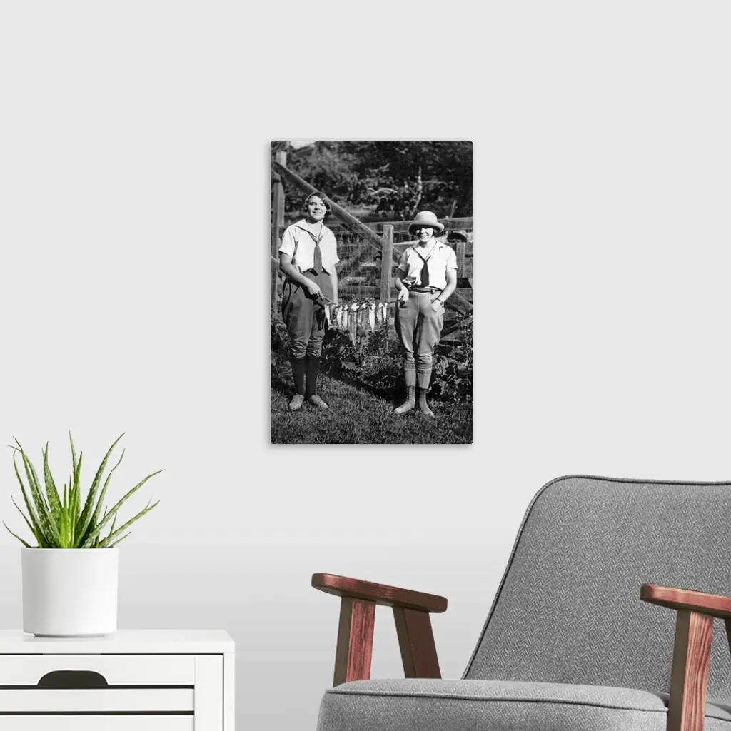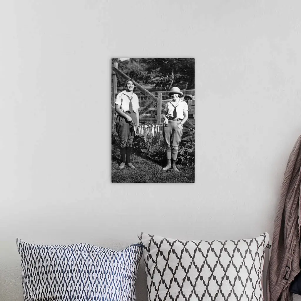 Vintage Image Of Women Holding String Of Fish
