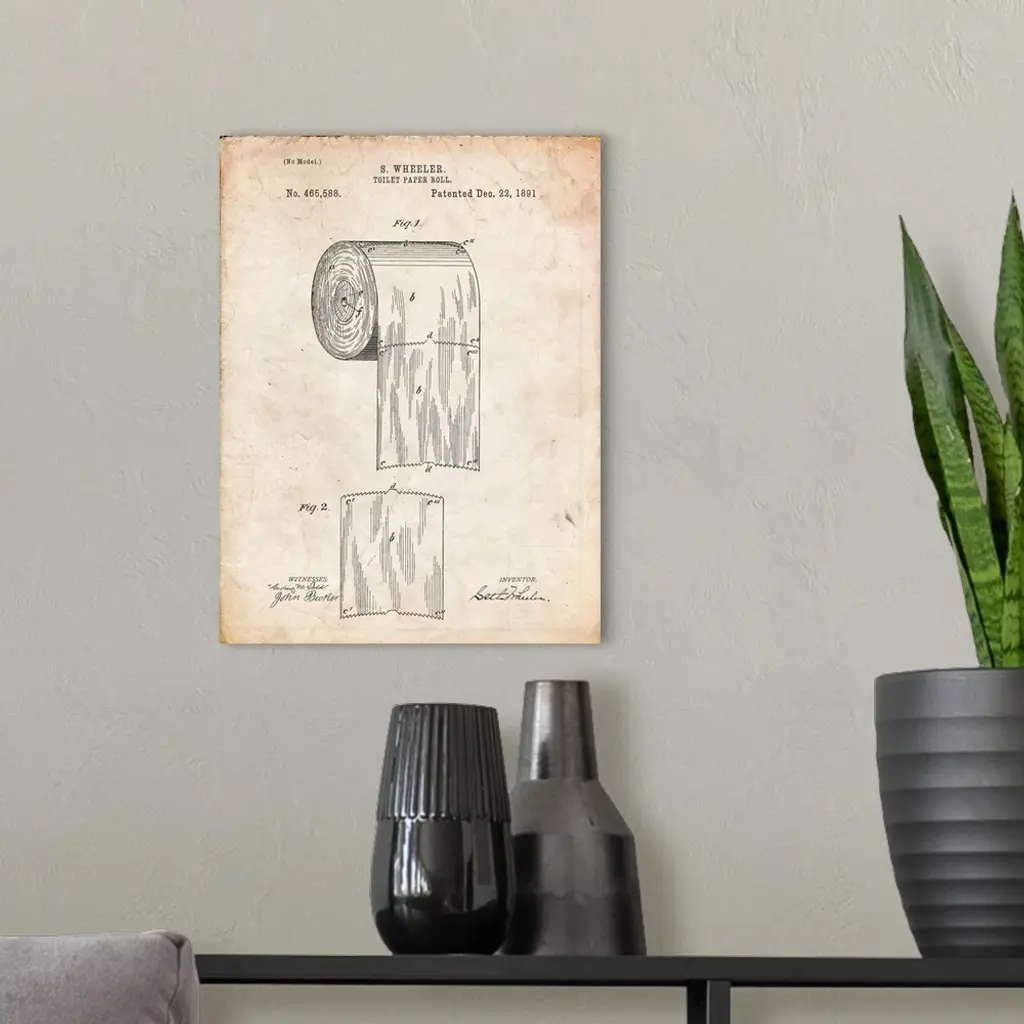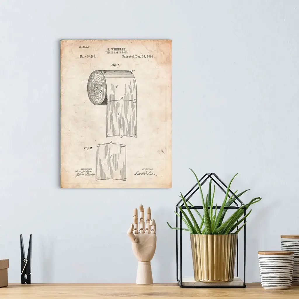Vintage Parchment Toilet Paper Patent wall art for home and office decor. Discover canvas art prints, photos, mural, big canvas art and framed wall art in GreatBigCanvas.com's varied collections.