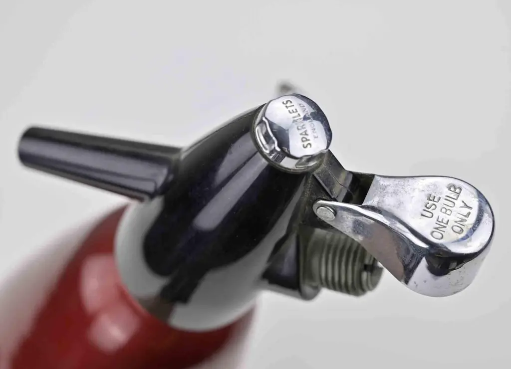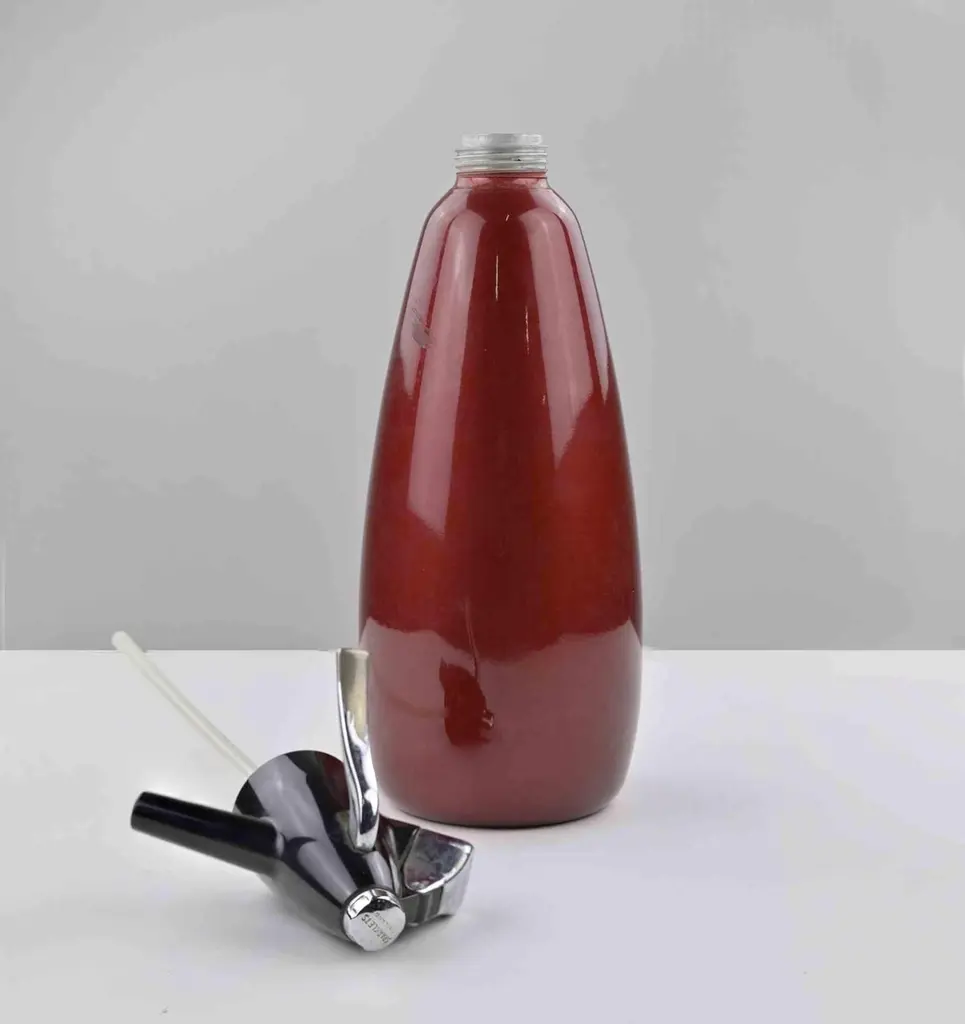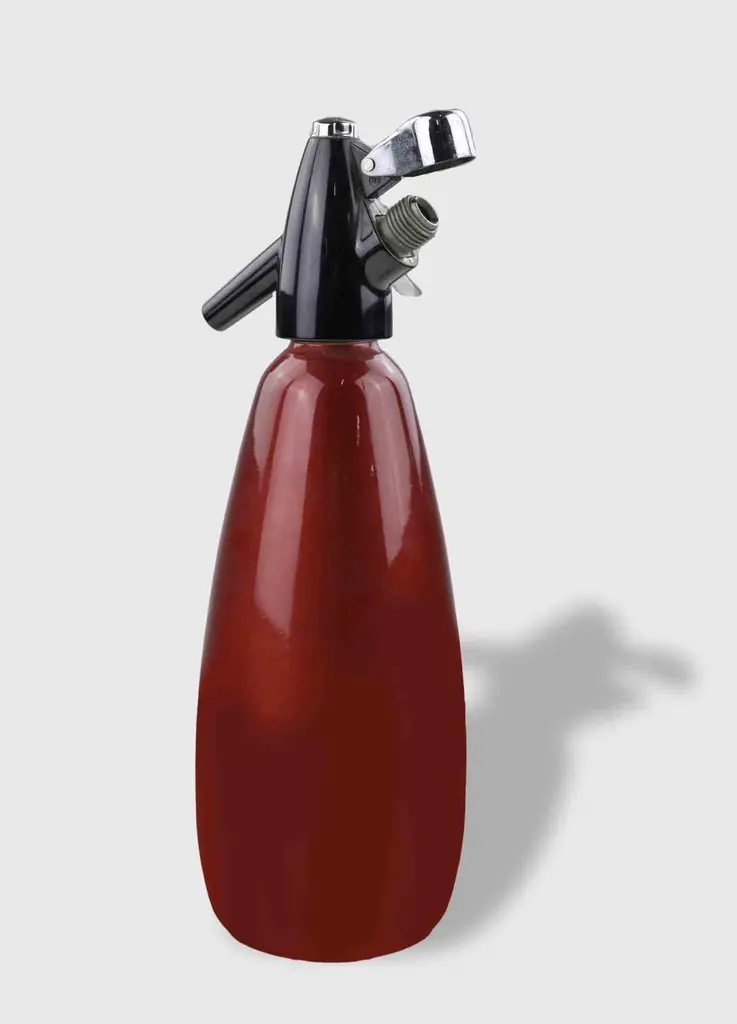 Vintage Selz Siphon 1970s Hostmaster designed and produced by Sparklets England.In ruby red enamelled aluminium.Very good condition.