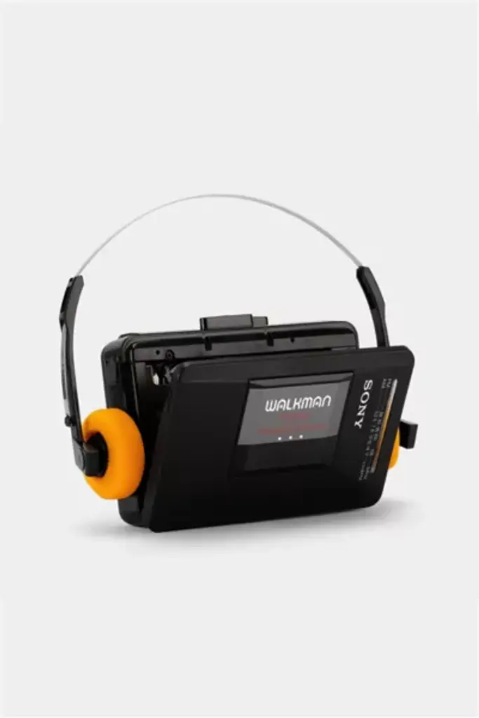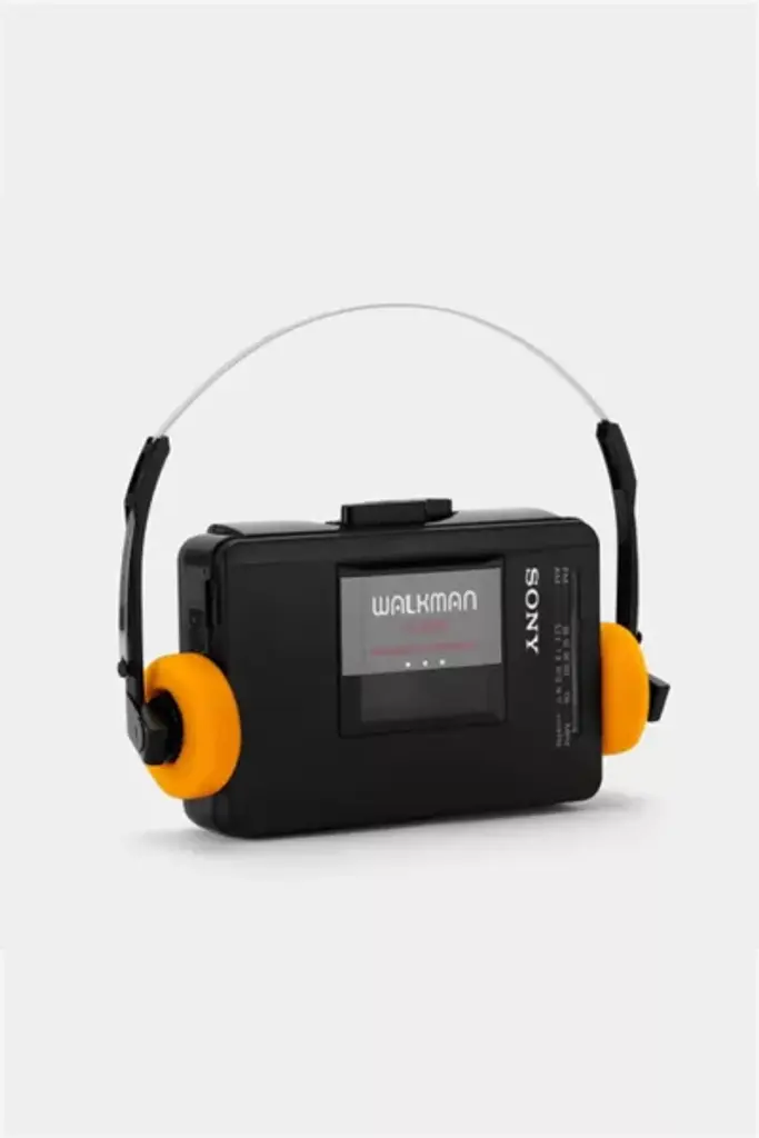Turn heads with this Sony WM-AF23/BF23 matte black cassette player and vintage-inspired orange headphones. Take a break from the digital world and live in the moment. Rewind, fast-forward, flip the tape and watch it spin. Slow down and embrace the analog experience that is music on magnetic tape — all while listening to an album all the way through. If you're getting into cassette tapes for the first time or revisiting an old music format, do it on a Sony Walkman for consistent, reliable audio performance. The WM-AF23/BF23 also includes a tested and working radio. Please note this little player had an entire life before Retrospekt. It will show signs of previous usage, but it is guaranteed to be working, clean, and restored. **Content + Care** \-Plastic \-Wipe clean with damp rag \-Imported **Size** \-4.5"l x 3.5"w x 1.25"h
