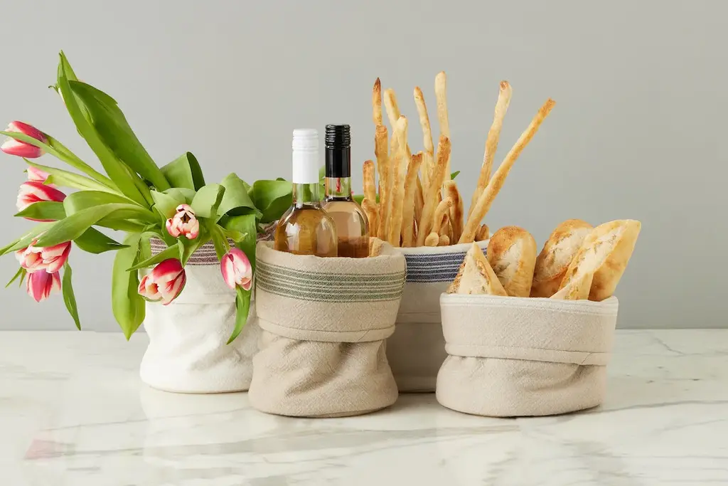 A seamless fusion of heritage and modernity, the French Bistro Collection is designed for those with a discerning eye for both style and substance. Crafted from 100% premium cotton, this bag set is luxuriously soft yet durable for everyday use. The signature striped motif - an homage to traditional Provençal textiles - lends a refined yet understated vibrancy, elevating any kitchen or tablescape with a touch of je ne sais quoi. Perfect as a bread basket, wine bag, planter or for organizing small items throughout your home, this versatile bag offers both functionality and style.
