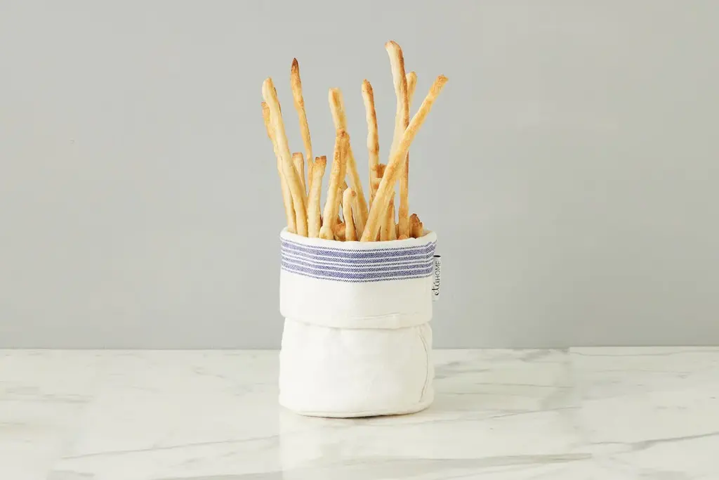 A seamless fusion of heritage and modernity, the French Bistro Collection is designed for those with a discerning eye for both style and substance. Crafted from 100% premium cotton, this bag set is luxuriously soft yet durable for everyday use. The signature striped motif - an homage to traditional Provençal textiles - lends a refined yet understated vibrancy, elevating any kitchen or tablescape with a touch of je ne sais quoi. Perfect as a bread basket, wine bag, planter or for organizing small items throughout your home, this versatile bag offers both functionality and style.