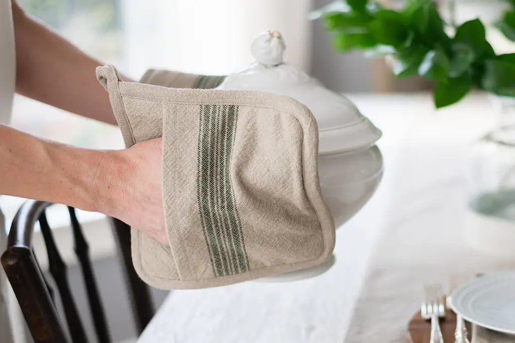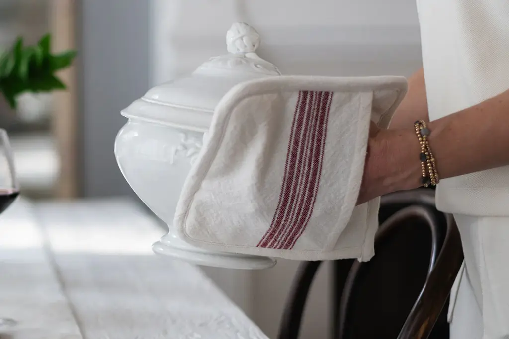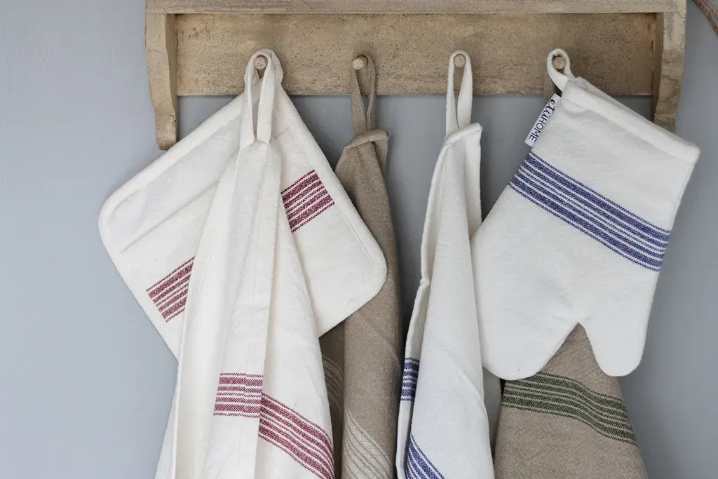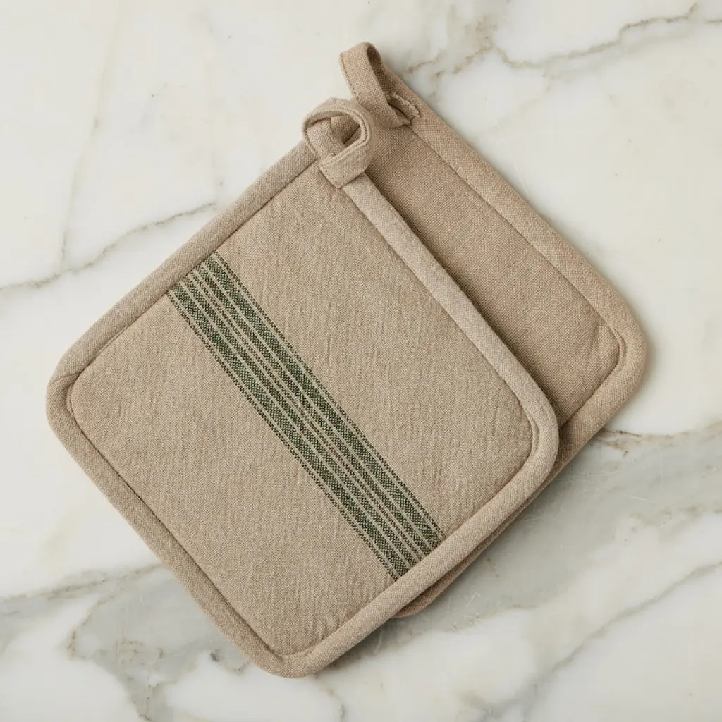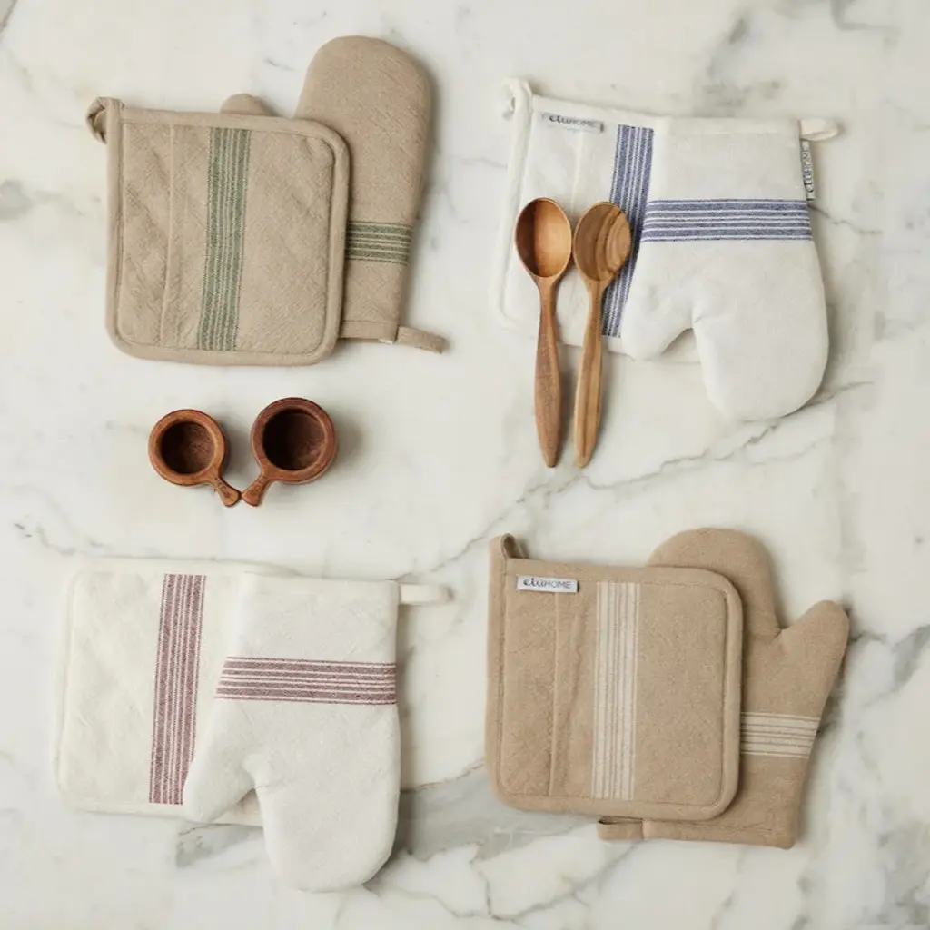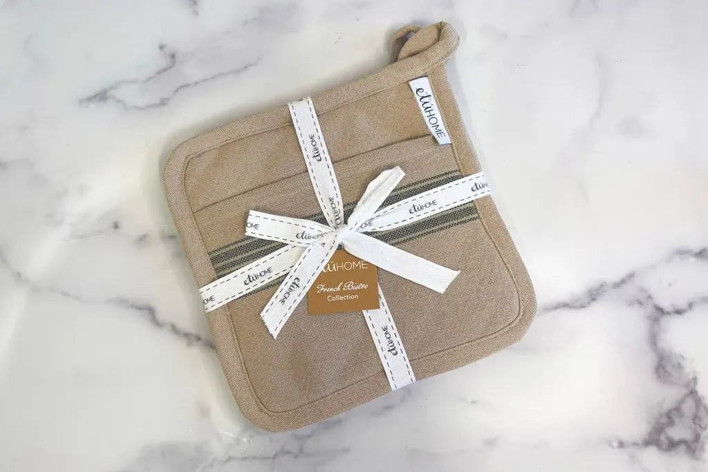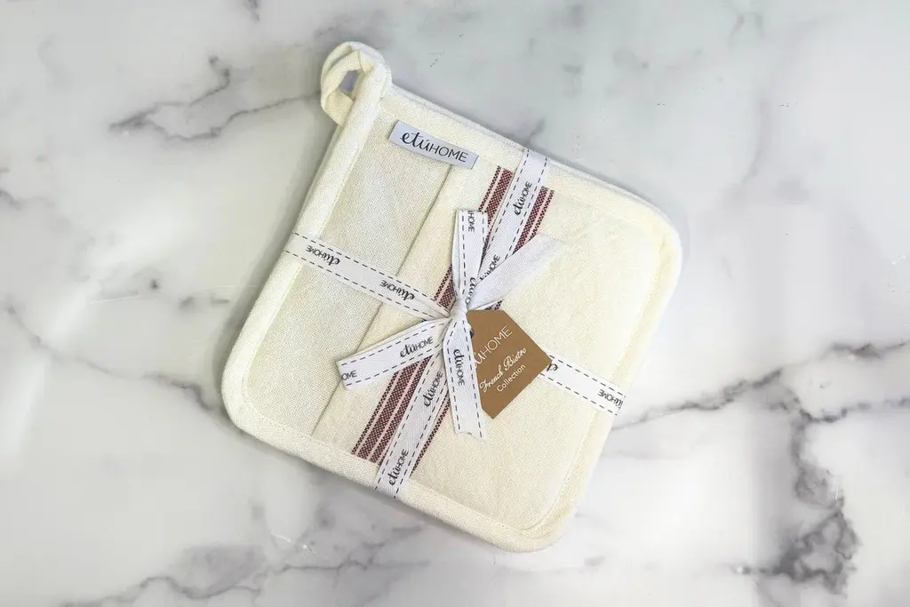 A seamless fusion of heritage and modernity, the French Bistro Collection is designed for those with a discerning eye for both style and substance. Crafted from 100% premium cotton, this pot holder set is luxuriously soft yet durable for everyday use. The signature striped motif - an homage to traditional Provençal textiles -lends a refined yet understated vibrancy, elevating any kitchen or tablescape with a touch of je ne sais quoi.