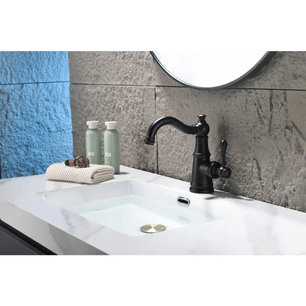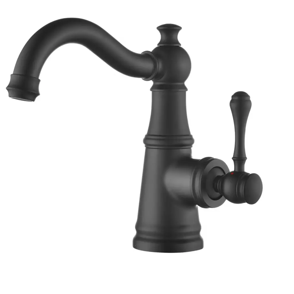 This Vintage Bathroom Faucet combines timeless elegance with practical functionality. Its matte black finish and classic curved design enhance the bathroom�s aesthetic appeal while providing a comfortable and precise control experience. Whether for daily use or as a statement piece, this faucet is an excellent choice that adds a touch of refinement to any bathroom setting