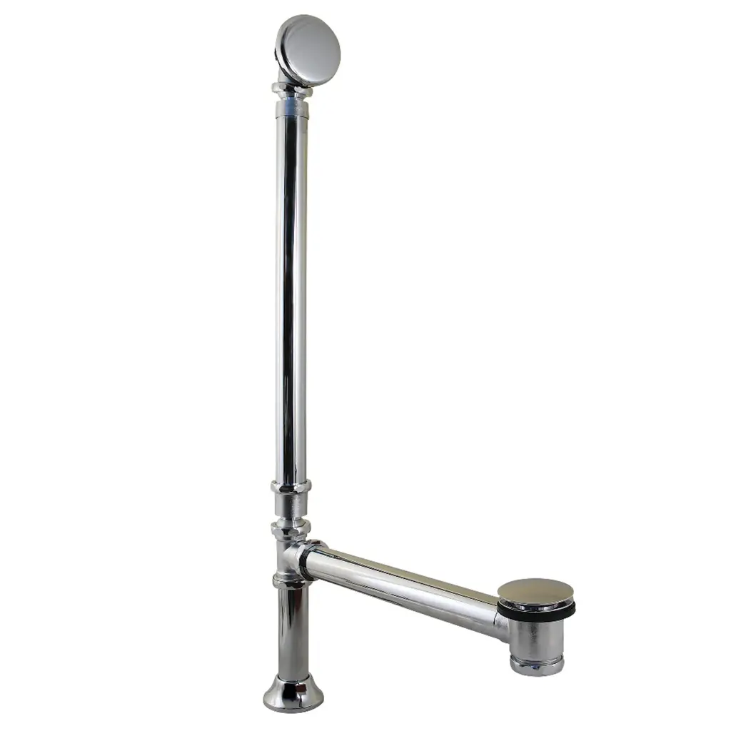 Introducing the newest addition to the Kingston Brass tub drain line - the Double Pivot Adjustable Waste and Overflow Drain. Designed with the installer and homeowner in mind, this revolutionary drain features a dual pivoting mechanism that allows it to easily adjust to different slopes and angles found in today's modern bathtubs. Whether you have a deep soaker tub or a shallow sloped tub, the drain's pivot points conform seamlessly to your tub's exact dimensions. Its umbrella-style toe-touch mechanism is not only durable but also adds a touch of elegance to the overall look. Available in various finishes, you can choose the option that perfectly complements your bath's design aesthetic. Say goodbye to complicated and frustrating drain installations - with the Double Pivot drain's advanced ergonomics and flexible design; you'll wonder why you ever settled for outdated hardware before. Make bathtub upgrades effortless with this innovative drain that is destined to become your new go-to choice.FeaturesSolid brass and stainless steel constructionDouble swivel design, adjusts the overflow pipe to fit any tub angle32-5/16" overflow pipe15" drain pipe1-1/2" diameter tube1-3/8" thread lengthFits tubs up to 24" deep (Overflow to Drain)Fits standard 1-1/2" NPSM threaded drains23 gaugeIncludes overflow plate and toe touch drainProp 65 disclaimerWARNING: This product can expose you to chemicals, including lead which is known to the State of California to cause cancer or birth defects or other reproductive harm, for more information, go to www.p65warnings.ca.gov