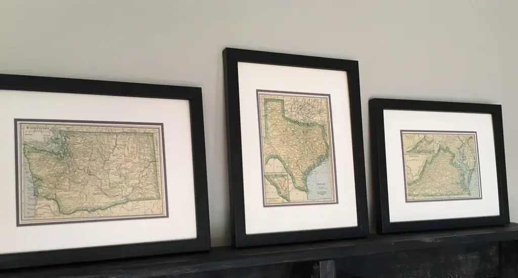 This Texas state map is an original vintage map that was published in the 1920s and has been newly matted and framed. Whether you decorate your home or give it as a gift what makes this beautifully detailed yellow, green and blue map more meaningful is that it is not a reproduction! Timeless Walls has spent years collecting vintage prints and when you purchase this map, we will provide the specific year and brief history on the back of the framed map. This custom-made more than 90-year-old authentic piece of history is wonderfully framed with high quality products. This map is competitively priced especially for being an authentic original vintage map as opposed to being vintage style. Additionally, it has been preserved in conservation quality products including Double acid free mats, UV glass, and a solid wood frame.Our maps make perfect meaningful gifts for holidays, birthdays, weddings, graduations or for family or friends who are relocating.We want you to have this piece of history for generations to come and to be proud of what you have in your home or of the gift you are giving. See other framed maps by Timeless Walls to create a set or gallery wall.Condition: Good, slight age toning, may have slight random spottingOverall Features:Original Vintage Map- Not a Reproduction Solid wood 3/4 inch black frame Double acid free mat: antique white top with black under mat UV protection glass Overall dimensions: 12.25"W x 9.75"H Dimensions of map itself: 7"W x 5"H and very legibleBrief Map origin on back of framed print Ready to Hang