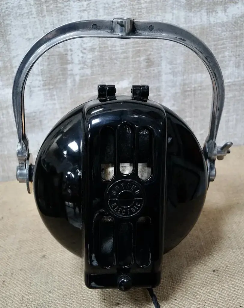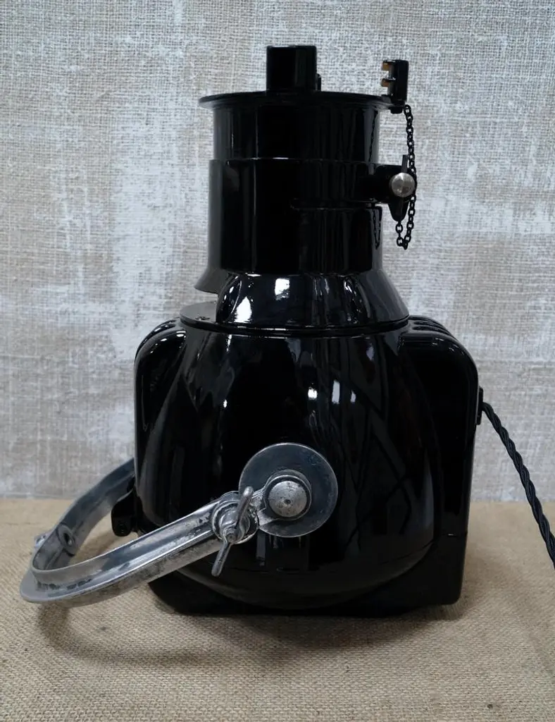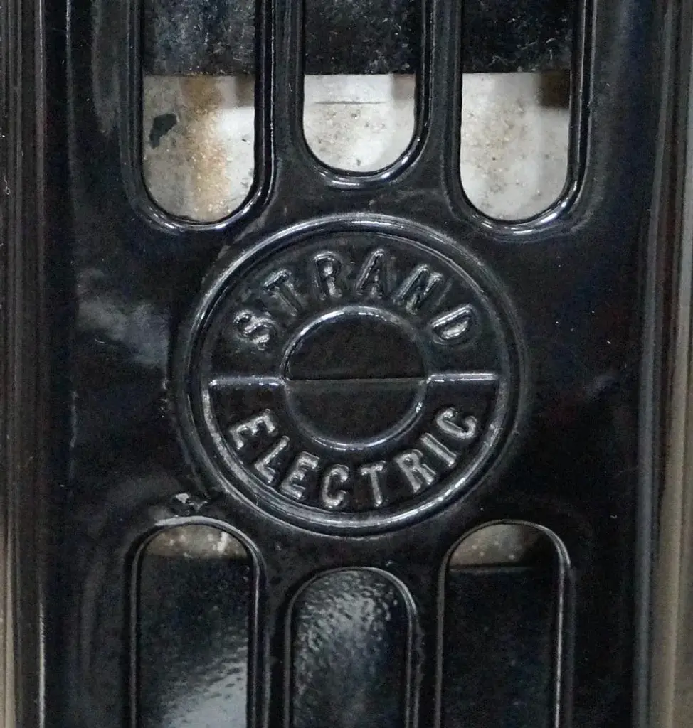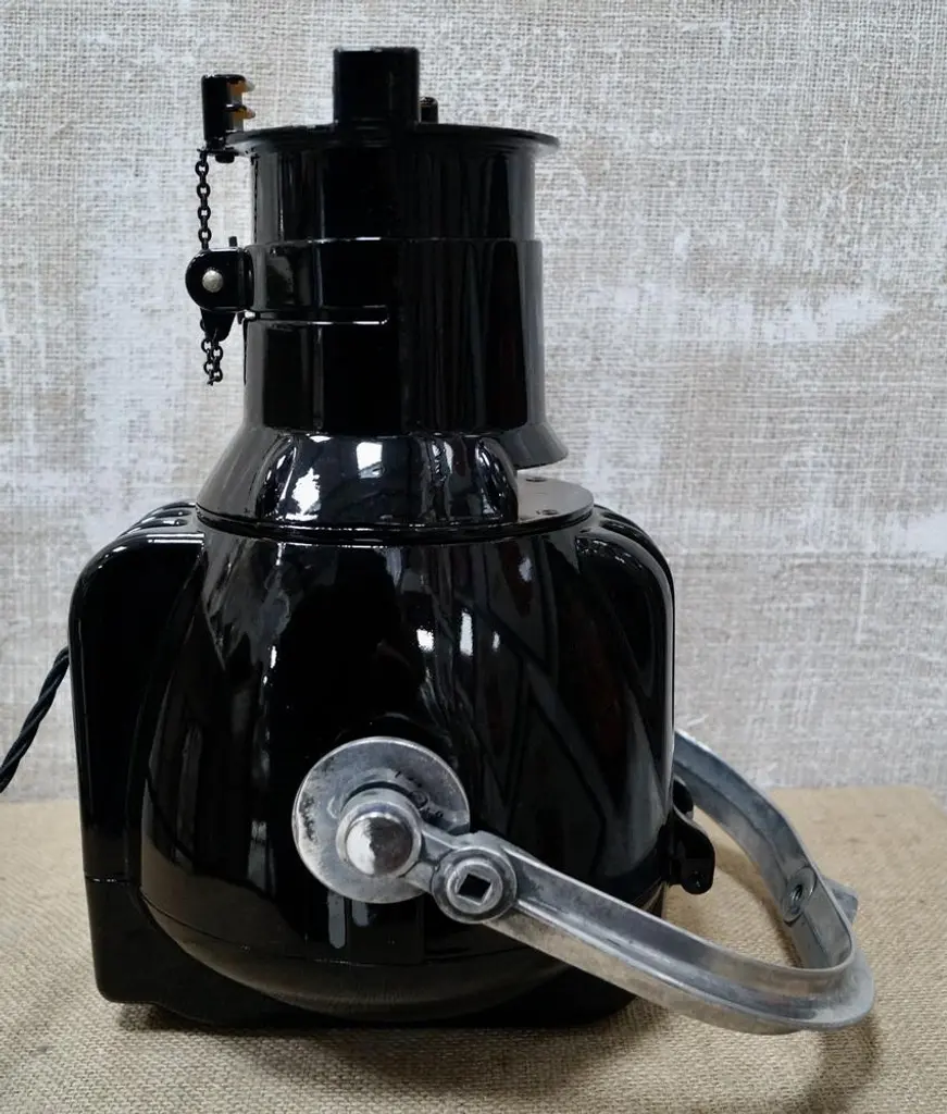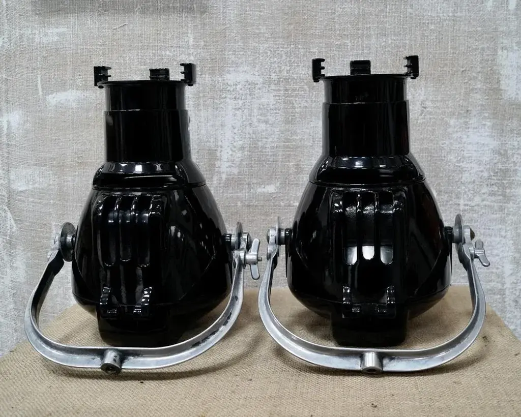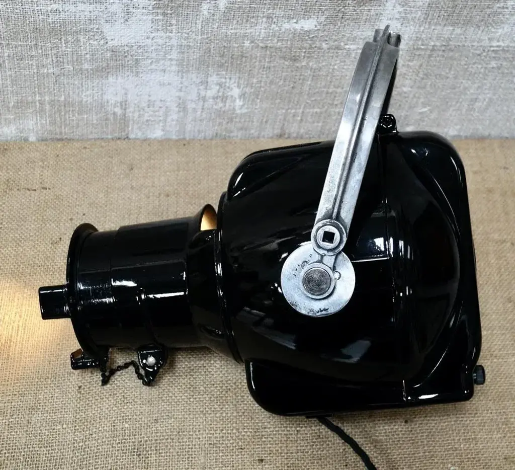 This iconic examples of british design was made by the strand lighting company in their covent garden works in london’s west end. Made from aluminium, it remains in original working condition, and has been refurbished. This lights has been superbly engineered and feature a die-cast ventilated body, 360-degree rotation, iconic design and an internal reflector. Made in england makers mark is stamped on the rear of the light. Circa 1950s. strand electric is an international theatre and television lighting company founded in 1914 in london’s west end, they supplied lighting fixtures and controls for the entertainment industry, strand's products have been used on countless theatre productions and tv shows worldwide. this spotlights has been pat tested and rewired so is ready to go, it has been professionally refurbished and painted to turn this classic into a modern piece of contemporary lighting, it would look amazing in any modern home or as shop or bar lighting. (2 black & 1 red light available, sold separately) w: 42cm inc handle. this piece has an attribution mark, i am sure that it is completely authentic and take full responsibility for any authenticity issues arising from misattribution, uk plug (up to 250v).the wiring of this item may be original and might need replacement, if not specified otherwise.