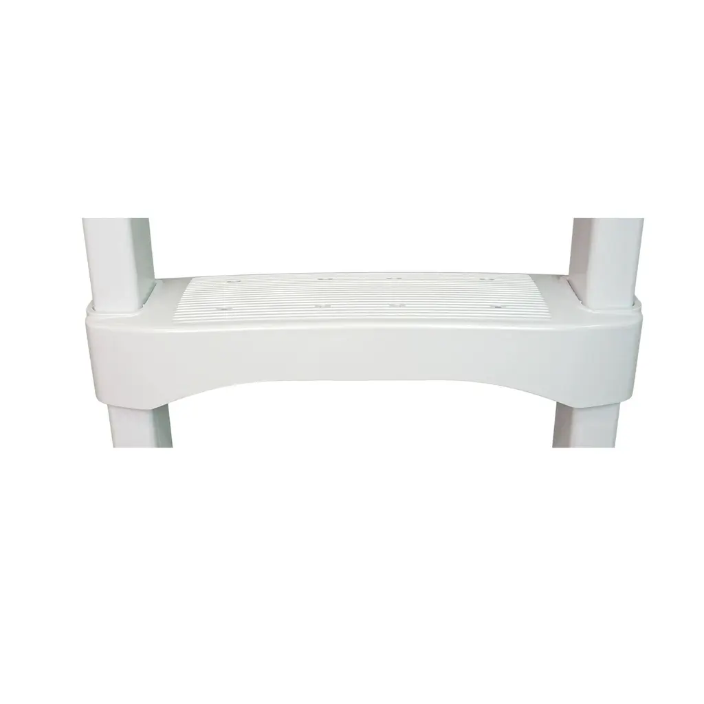 Set up an easy way to enter and exit your pool safely and securely with the Vinyl Works SLD2 In-Pool 4-Step Ladder. Built specifically for 60-inch sidewalls in above-ground or in-ground pools, this resin and aluminum swimming pool ladder supports users up to 300 pounds to safely guide them in and out of your pool. This Vinyl Works ladder is ultra stable. The pool ladder features ergonomic, 31.5-inch tall aluminum handrails allow you to ease into the water comfortably and an 11.75-inch tread rises between steps so kids can also feel confident when climbing out of the pool. The last of the 4 treads sits a few inches above the anti-slip base that can be bolted to the pool surface for added stability. The parts are all built to snap and lock together for easy assembly. When the weather gets cold and it's time to cover your backyard swimming pool, this ladder can be deconstructed just as easily and stored away until more sunny days return. Standing up to corrosion from weather and wear, the SLD2 In-Pool Ladder for 60-Inch Pools from Vinyl Works is the maintenance free way to make your in-ground or above-ground pool more accessible. Protect your liner for scratches made by your ladder with this Hydro Tool Swimline 9 x 24-inch floor protective mat. The protective mat eliminates scratching and chaffing caused by ladder. It as a cushion between ladder base and pool liner and protects pool liner from damage caused by ladder base. Great for inflatables, above-ground or in-ground swimming pools! 4-Step Ladder for 60-Inch Swimming Pool Walls, White Aluminum rail and resin step pool ladder use in-ground or above ground pools Built for pools with a wall height of 60 inches Heavy-duty premium resin material resists corrosion to stand up to water and the elements Ergonomic, 31.5-inch tall aluminum handrails allow you to ease into the water comfortably Kids can also use the ladder easily with the 11.75-inch tread rise Bottom tread sits above the anti-slip base that can be bolted to the pool surface Prefabricated parts snap together making assembly and installation simple for any pool owner 300-pound weight capacity on each step guarantees it can hold up for years Product Type: Pool ladder Type: In-pool ladder Material: Resin and aluminum Weight capacity: 300 pounds Color: White Hydro Tools Swimline 87951 9x24-Inch Vinyl Protective Swimming Pool Ladder Mat Acts as a cushion between ladder base and pool liner Protects your pool liner from damage caused by ladder base Eliminates scratching and chaffing caused by ladder Great for inflatables, above-ground or in-ground swimming pools Color: Blue Dimensions (L x W): 9 x 24 inches Part number: 87951