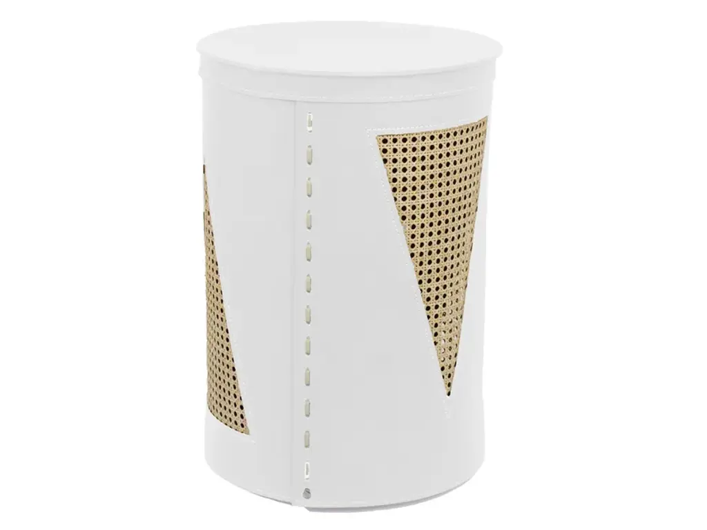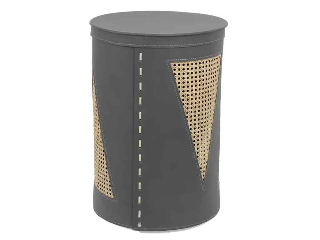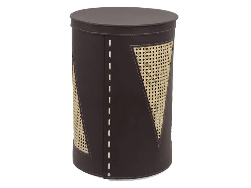 Retrò style, the oval laundry basket Violo in regenerated leather inside and out with triangular inserts in Vienna straw. With removable internal bag in cotton, flame in plywood with rubber feet.