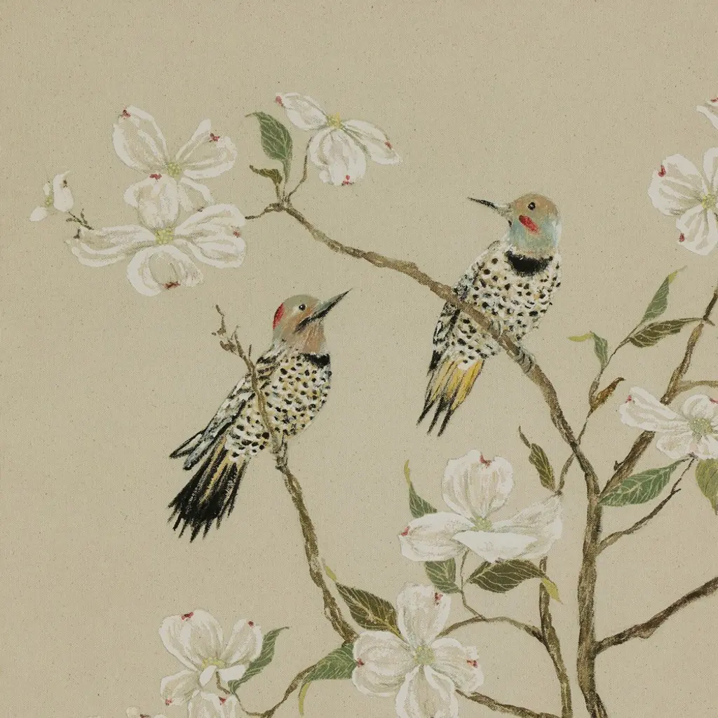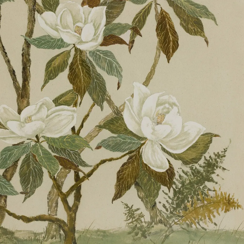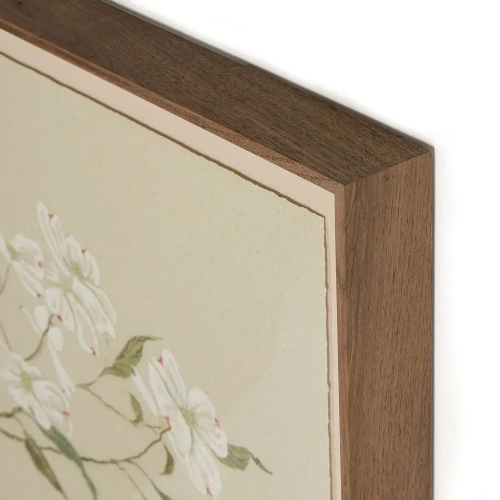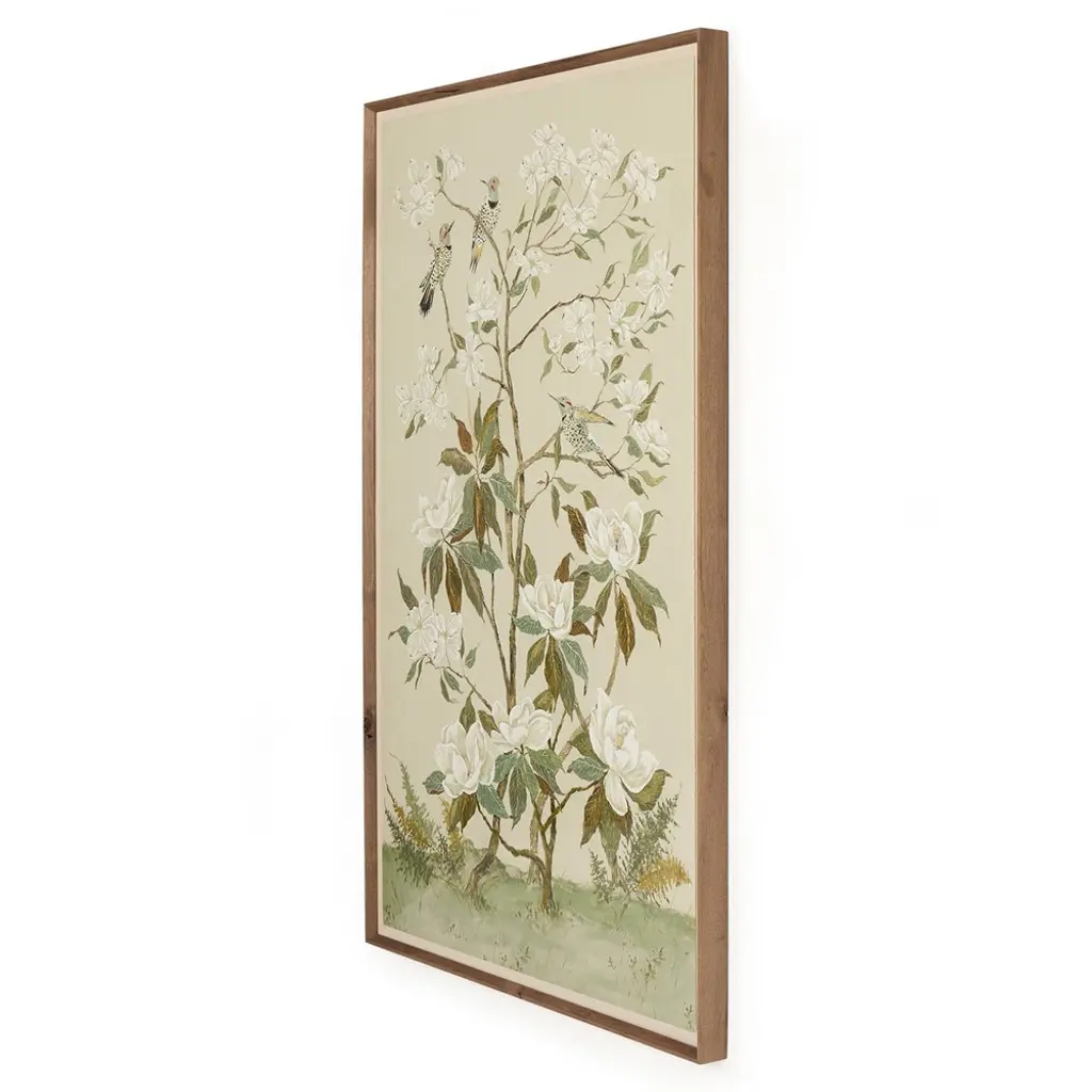 Vionna French Country Cream Floral Chinoiserie Walnut Frame Painting - 40x26