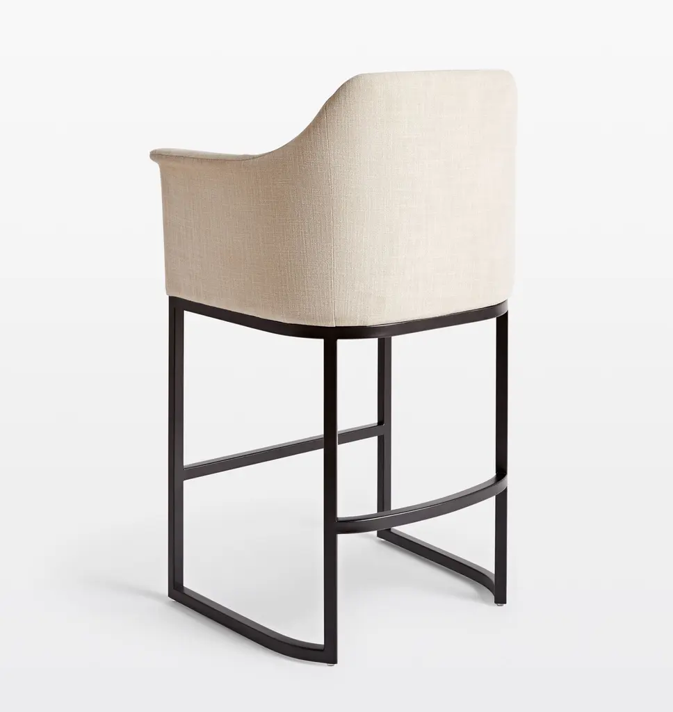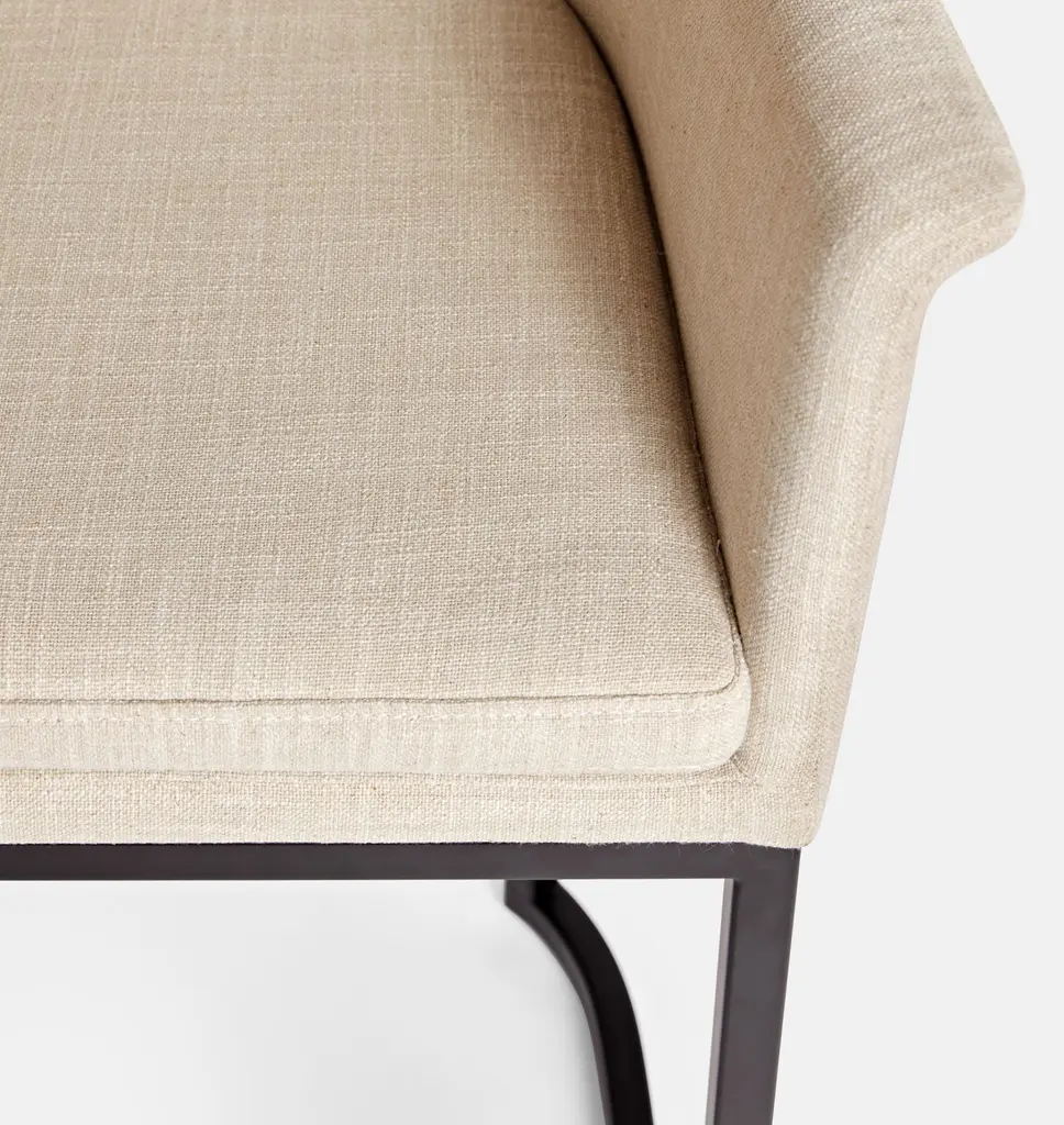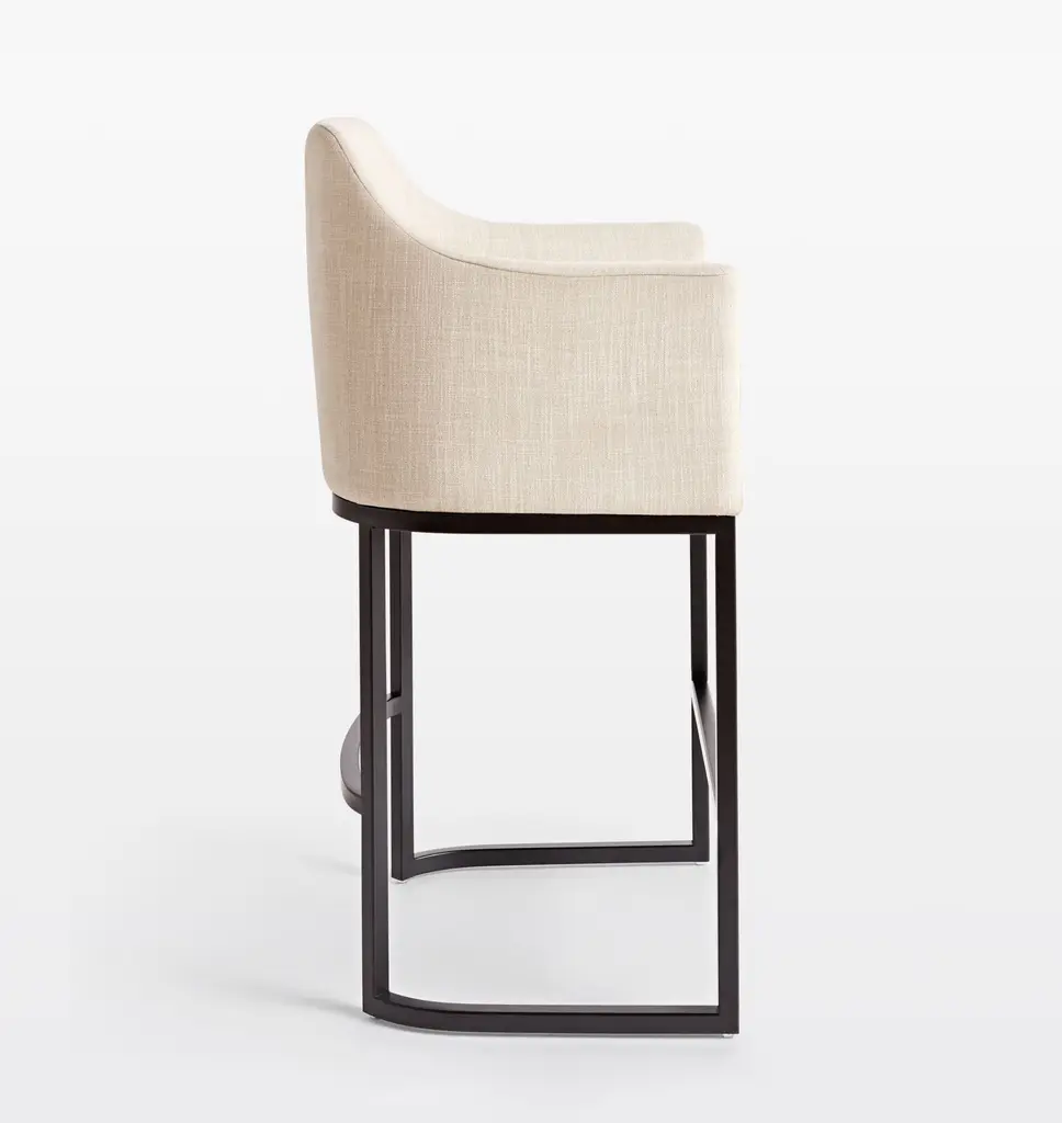 Designed with curved armrests for a streamlined silhouette, our Virgil Counter Stool pairs Linen Blend Ivory upholstery with a contoured black metal frame. The result is a sophisticated and comfortable addition for your kitchen island or counter bar.
