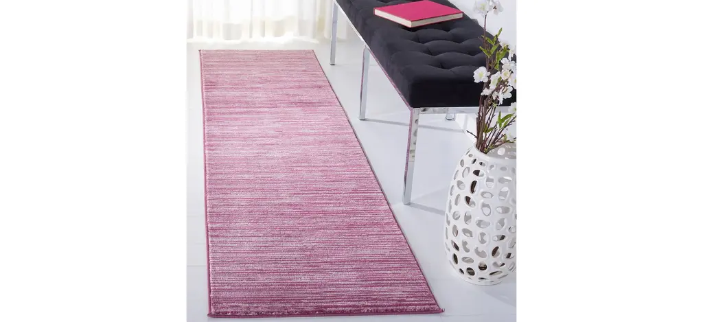 The Vision Runner Rug is a soft textured, tonal area rug inspired by the organic energy of today's metro-chic decor, with shimmering hues set against a veiled white background casting a radiant display. It is machine loomed using supple synthetic yarns for a comforting feel underfoot and vivid colors that last.