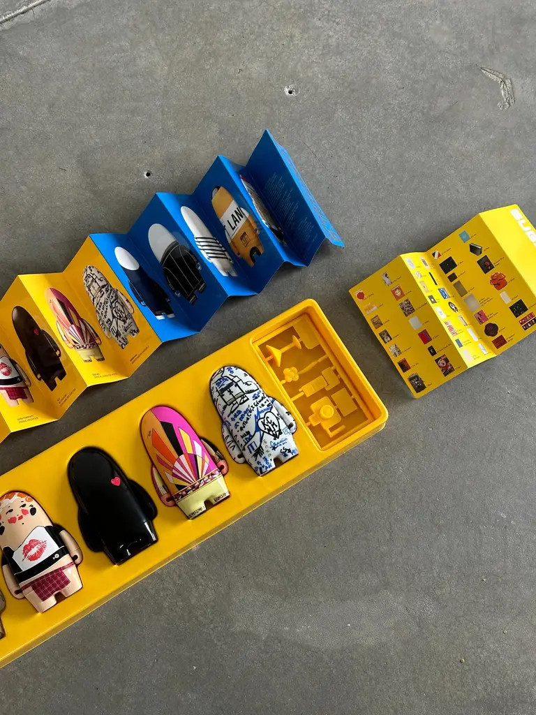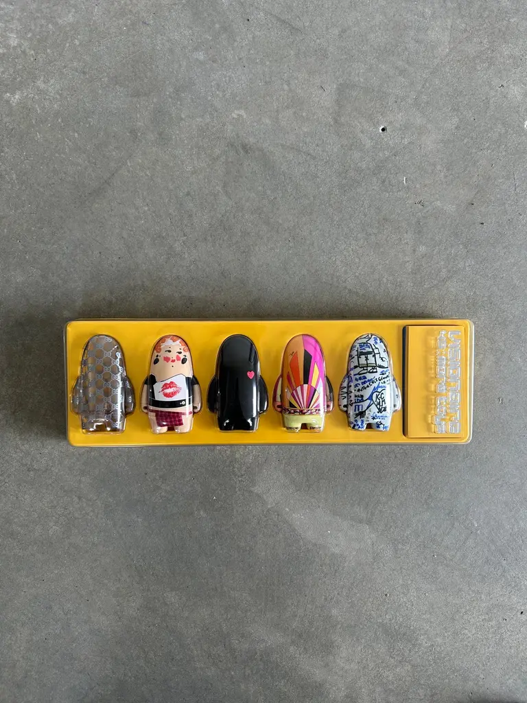 Limited edition, numbered 0553 of 4000 copies.From the Visionaire website:44 TOYS, in collaboration with Kidrobot, consists of ten humanoid characters created by designers like Karl Lagerfeld, Miuccia Prada, and Marc Jacobs for Louis Vuitton. Complete with mini accessories like cell phones, cameras, and martini glasses, this army of toys is one of the most highly sought-after Visionaire issues ever — grown adults behaved a lot like children in attempts to get their hands on a copy. For Kidrobot founder Paul Budnitz, the series defined a moment for his toy label, expanding beyond its strictly street fan base. “We were focused on working with graffiti artists and street artists, and Visionaire was a way for us to connect with designers, which was really fun," said Budnitz.Visionaire is an experiential agency that has been collaborating with artists, influencers, and fortune 500 companies for over 25 years. Visionaire conceptualizes and produces public art installations, film, immersive and interactive experiences, branded content, art multiples all curated through the lens of art, fashion, and contemporary culture.Visionaire was established in 1991 with its roots in limited edition publishing which has since expanded into an experiential agency. Visionaire has been collaborating with artists, influencers, and Fortune 500 companies for over 25 years; conceptualizing and producing public art installations, film, immersive and interactive experiences, branded content, and art multiples through the lens of art, fashion, and contemporary culture."The alternative small run publication has often dazzled, always relentlessly focused on changing the way we look at the printed page. Looking haughtily over its shoulder to Fleur's Flair, Visionaire rolls up its sleeves, cups its hands to its mouth, flexes it muscles... Oh, I could go on all day... And whispers, "The eyes have it."— David Bowie