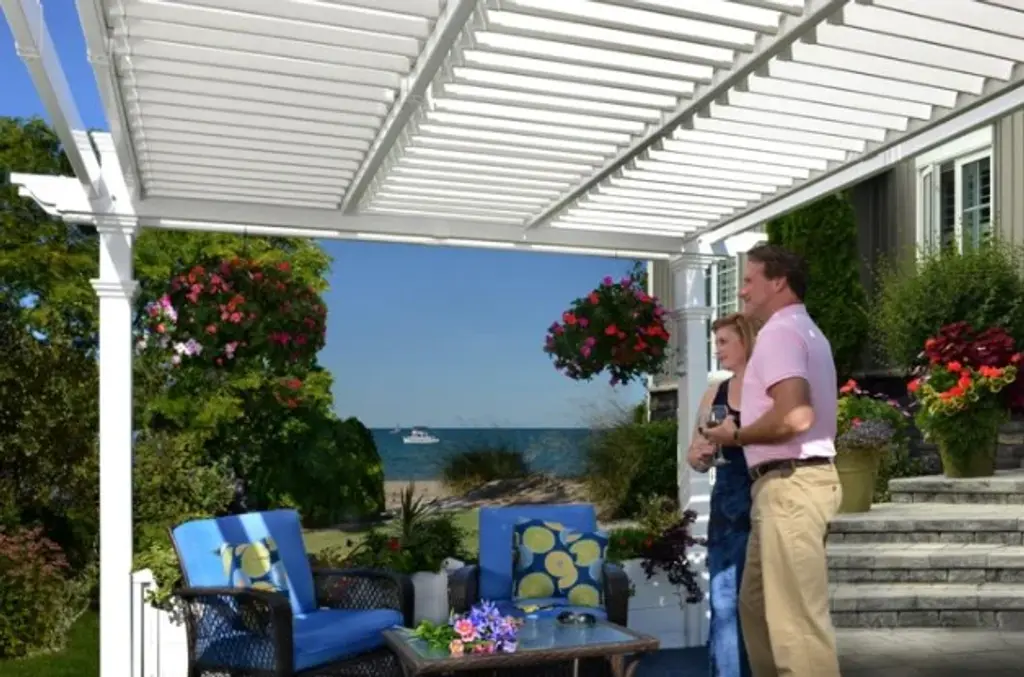 Crafted with premium weather-resistant vinyl, this Vita Pergola is maintenance-free and built to last. Nothing defines a backyard oasis like a pergola. It is perfect for providing shade to a walkway or sitting area.It’s Vita’s conviction that good starts with giving. As a company, they are committed to looking beyond their personal lives and asking, what can we give? One project that Vita supports is The Inn of the Good Shepherd. It is a homeless shelter and food bank that distributes over 6,000 lbs of fresh produce into their local community each week. They also support global non-profits. These include The Sanmen Youwei Library in China and Thrive in Kageyo, Rawanda. With training and tools, they empower people to grow an abundance of healthy, organic, disease-fighting foods.
