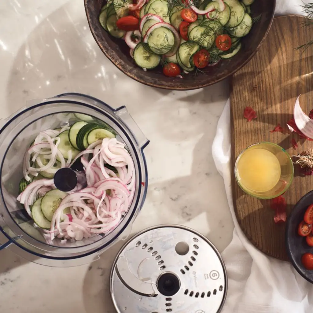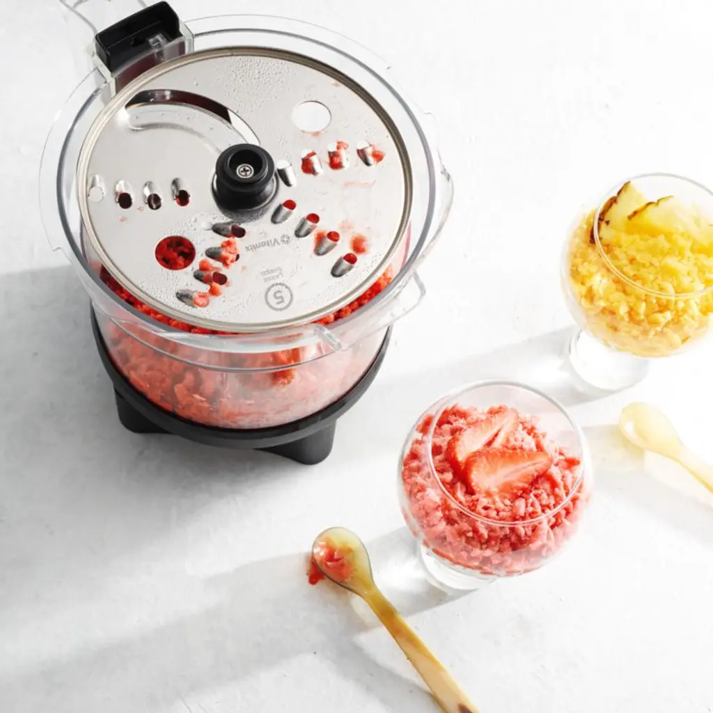 Get even more out of your Vitamix Ascent blender with this high-performance food processor attachment. Affixing directly to and powered by the blender base, the attachment offers the precision of a full-feature processor without the clutter of another appliance on your countertop. A multi-use blade chops, minces, kneads and mixes, while thin and thick discs shred and slice.