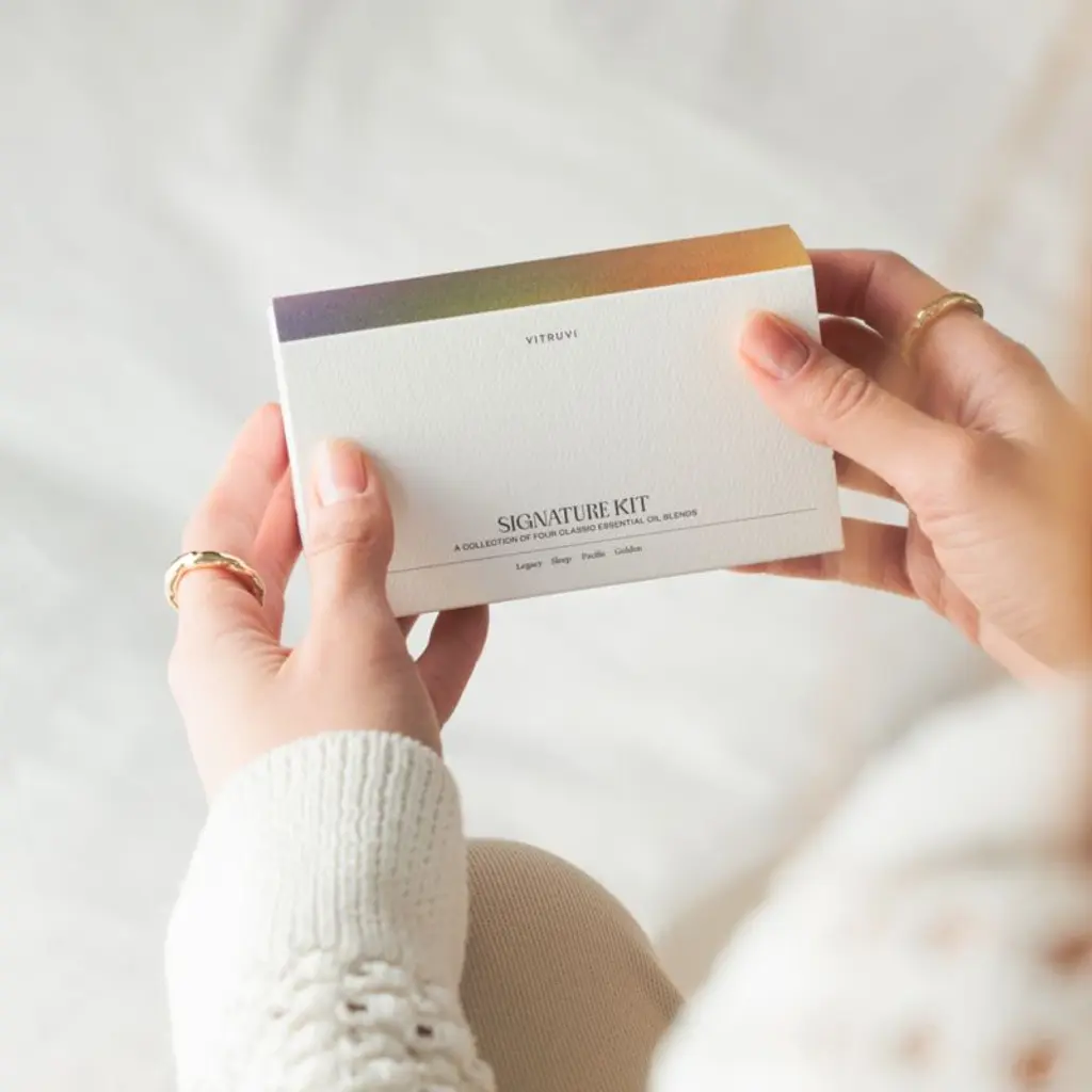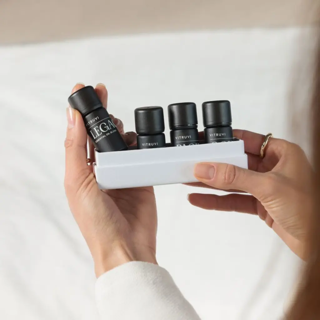 Infuse everything from shower scrubs and bath water to the air in your home with four harmonious botanical scents. This quartet of essential oil blendsSleep, Pacific, Golden and Legacymix effortlessly with salts, sugars and body oils to create luxurious skin treatments. Or add them to a Vitruvi electronic diffuser (sold separately) to fill the room with scented mist for a spa-like atmosphere. The boxed set makes a thoughtful gift.